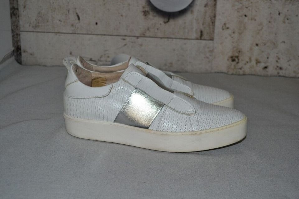6.) - leichter und perfekt bequemer "slip on" Einsteig mit "Gummiband" (einfach hineinschlüpfen), Laufsohle aus Thermogummi, attraktives und bequemes Plateau mit ca. 3 cm, alles weitere zeigen die Fotos! Die Schuhe wurden ganz wenig getragen, weisen lediglich wenige Gebrauchsspuren auf und befinden sich in einem guten bis sehr guten Zustand, siehe Bilder!