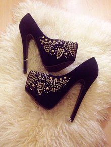 Pumps High Heels schwarz mit goldenen Nieten Catwalk
