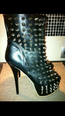 Hallo ihr lieben.Hier biete ich ein nagelneues Paar Mega High Heels Peeptoe-Stiefeletten in schwarz mit Stachelnieten an.Alle Nieten vorhanden und unversehrt.