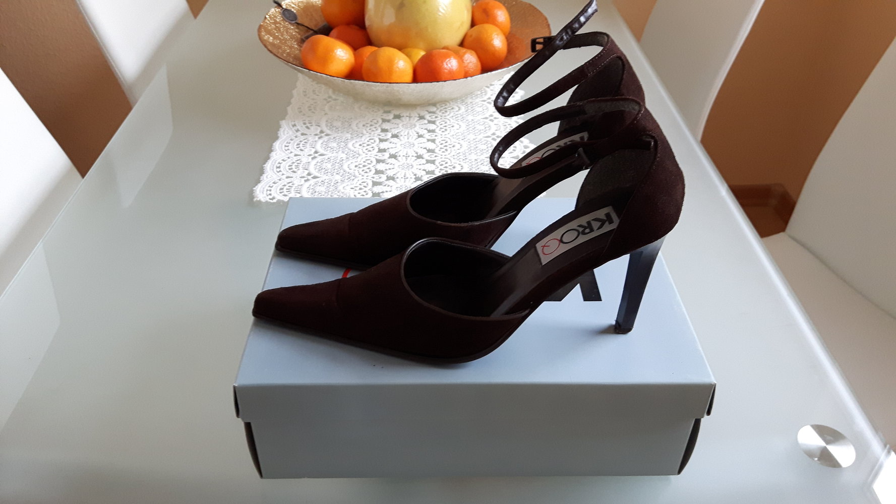 KROQ by Görtz Schuhe, Wildleder Pumps mit Riemchen, sehr edel und hochwertige Qualität, spitze Form, ca. 12 cm Absatzhöhe, Farbe: Dunkelbraun, Zustand: wie neu.