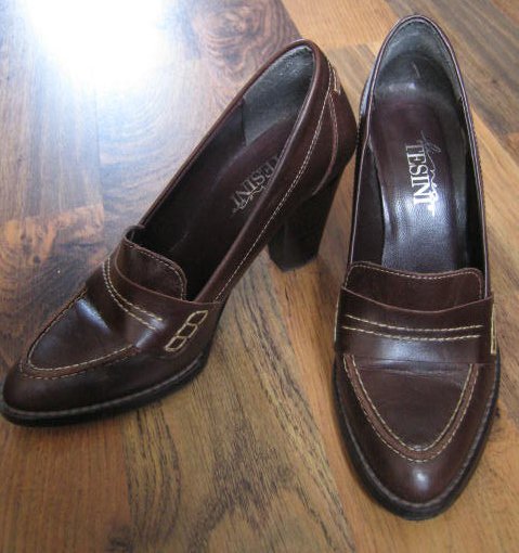 Braune Echtleder Pumps von "Linea Tesini" mit tollen Kontrastnähten .