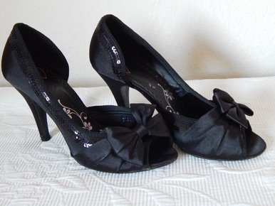 süße schwarze Peeptoes Pumps mit Schleife und Pailetten