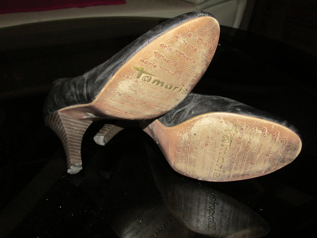 Verkaufe hier meine etwas ausgefallenen mega bequemen schwarz grauen im Antik-Look Pums in 38 von Tamaris. Innen sind sie Leder und außen weiß ich es leider nicht so genau. Könnte aber auch Leder sein!??