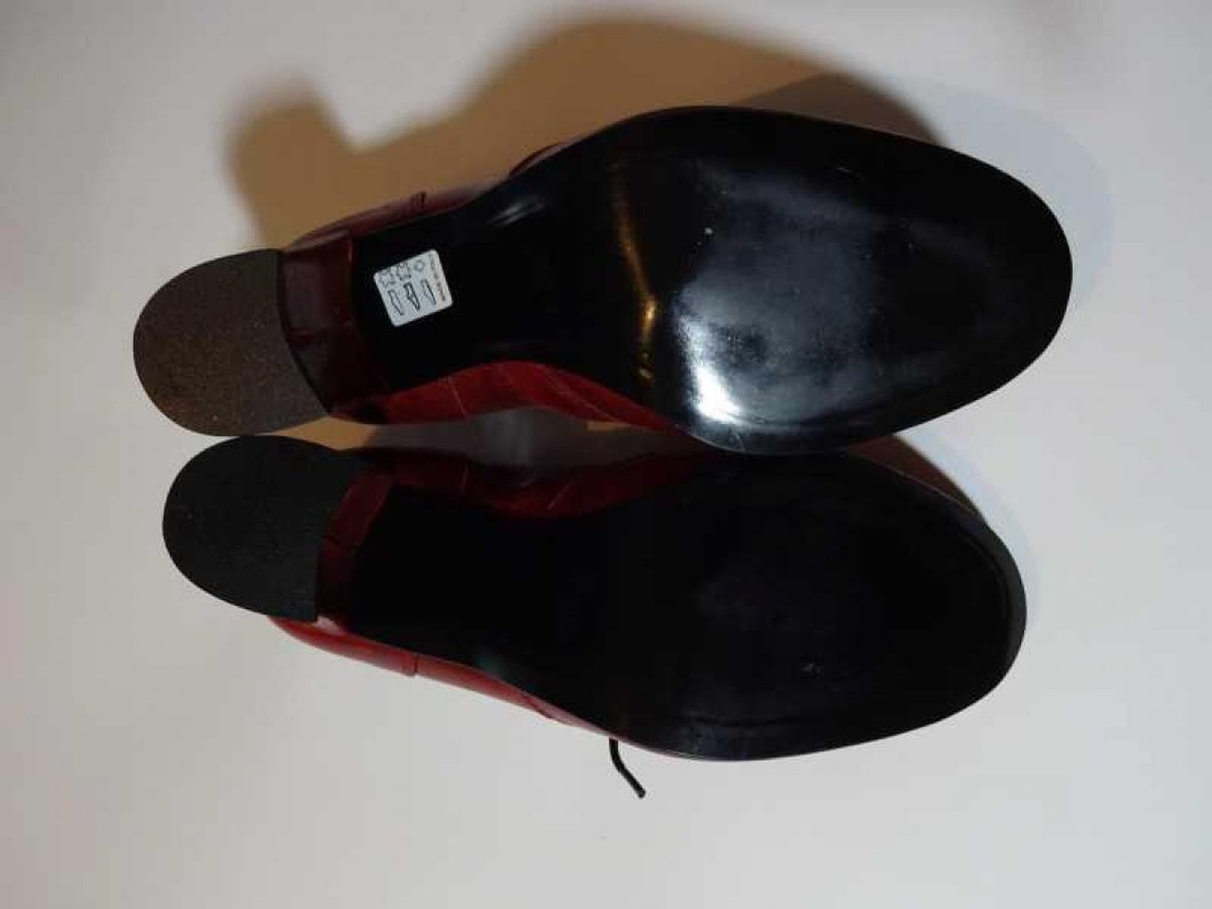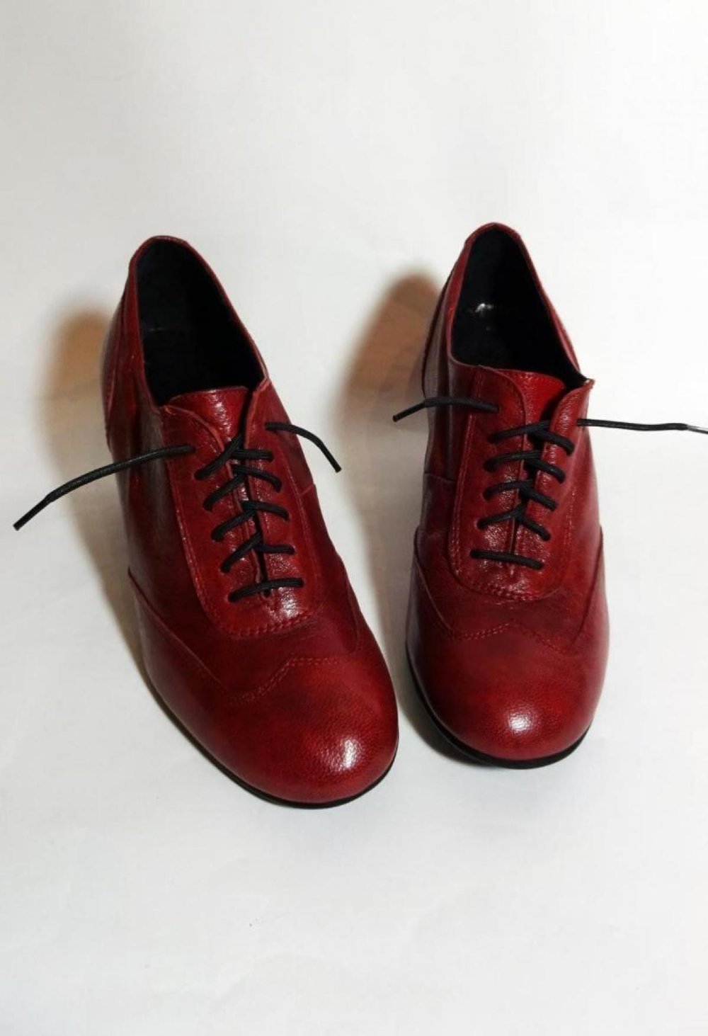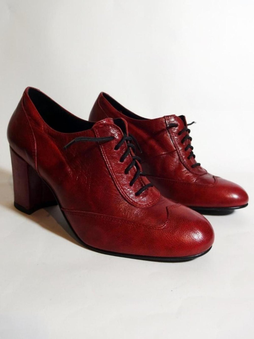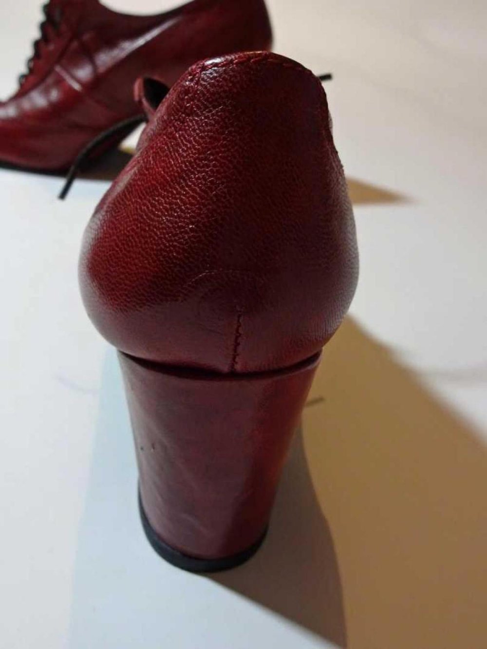 Traumhafte dunkelrote Schnürpumps aus weichem Leder mit Blockabsatz. Die Schuhe sind, wie die Prägung an der Sohle zeigt, in Italien handgefertigt worden. Von welchem Label sie sind, weiß ich leider nicht.
