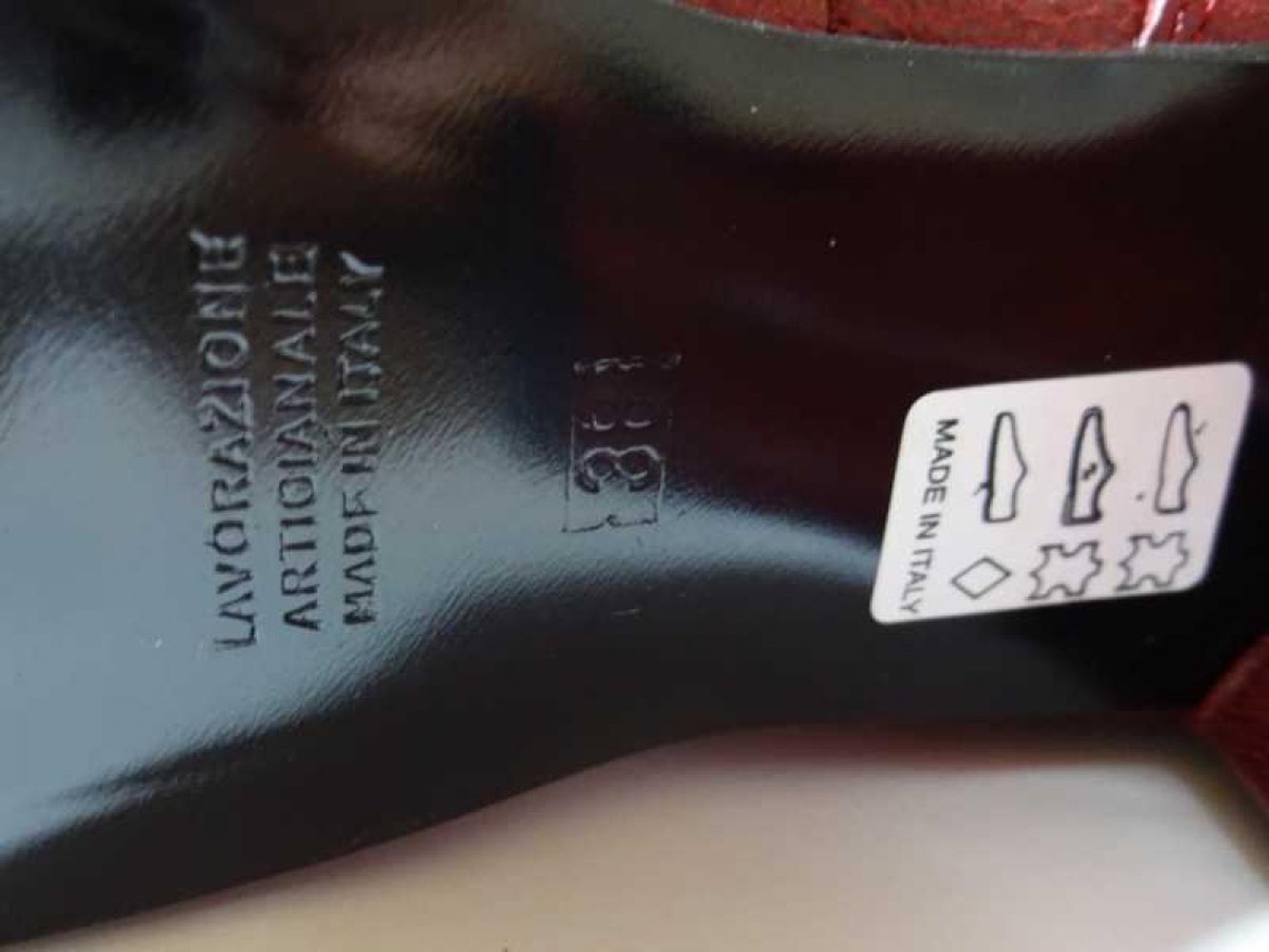 Rote Schnürpumps Italien Handarbeit Leder Blockabsatz Gr. 38 37/38
