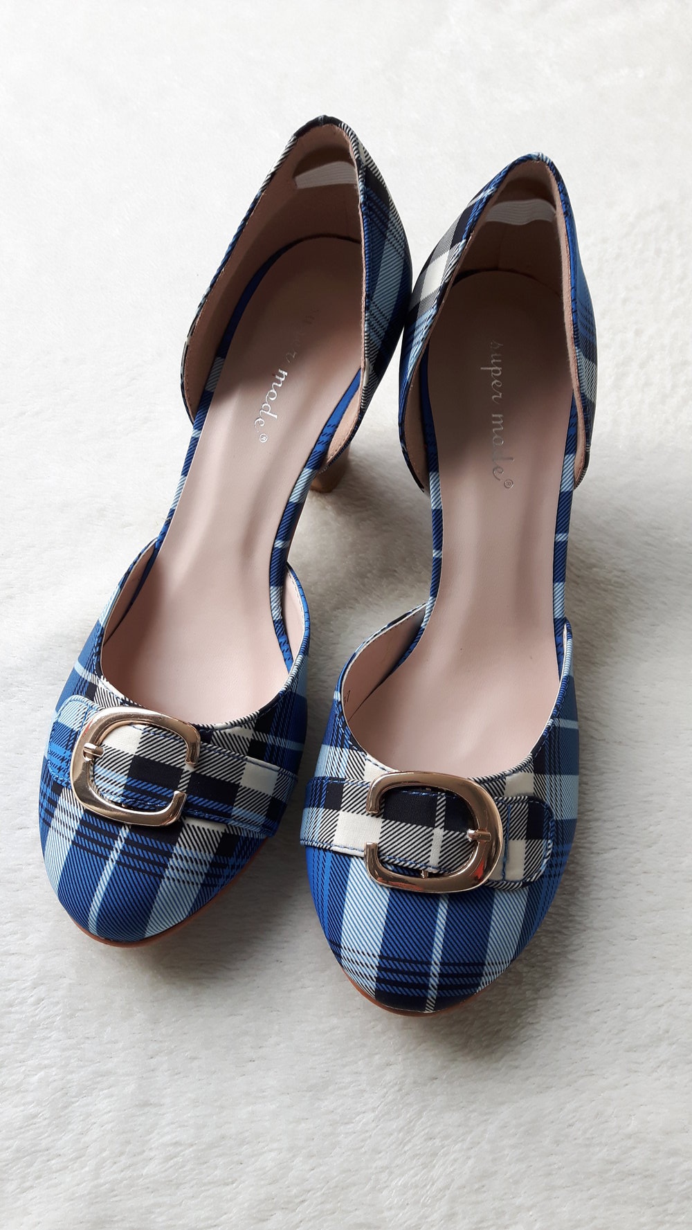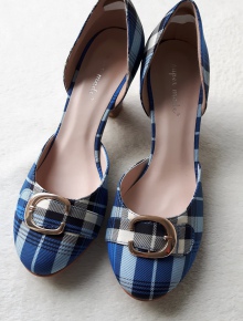 Karierte Pumps in blau schwarz weiß neu