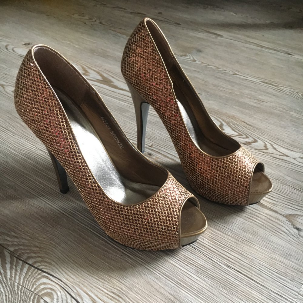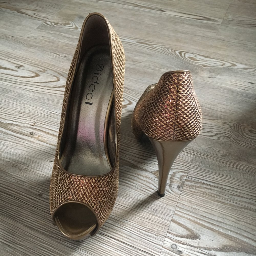 Goldfarbene Pumps, Gr. 39, Riemchen