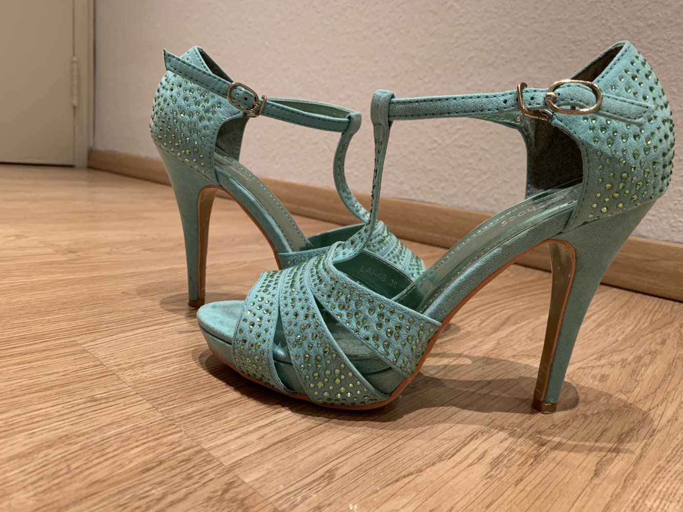 Neuwertige Sandaletten in türkis mit Glitzersteinchen; kaum getragen.