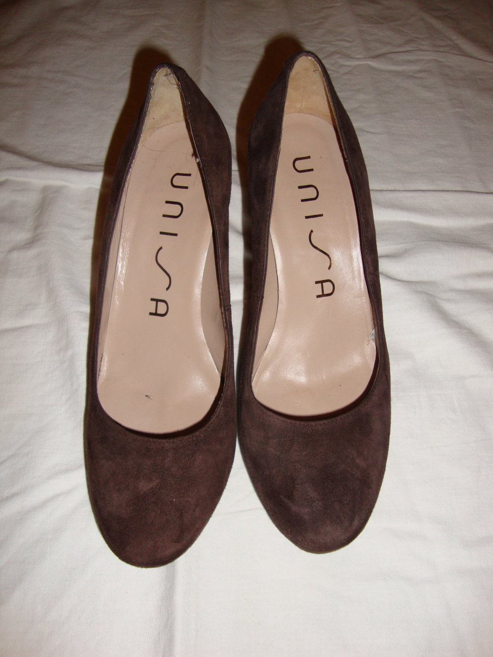 Biete ein Paar fast unbenutzte Paar Unisa Pumps aus dunkelbraunem Wildleder an, einziger Mangel siehe letztes Foto....eine winzige Stelle wo sich das Leder vom Schuhabsatz gelöst hat...ich vermute dass meine Freundin damit irgendwo hängen geblieben ist, oder angestossen hat.