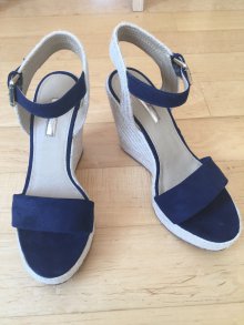 Ich verkaufe meine dunkelblauen Sandalen mit Keilabsatz von Esprit in Größe 38.