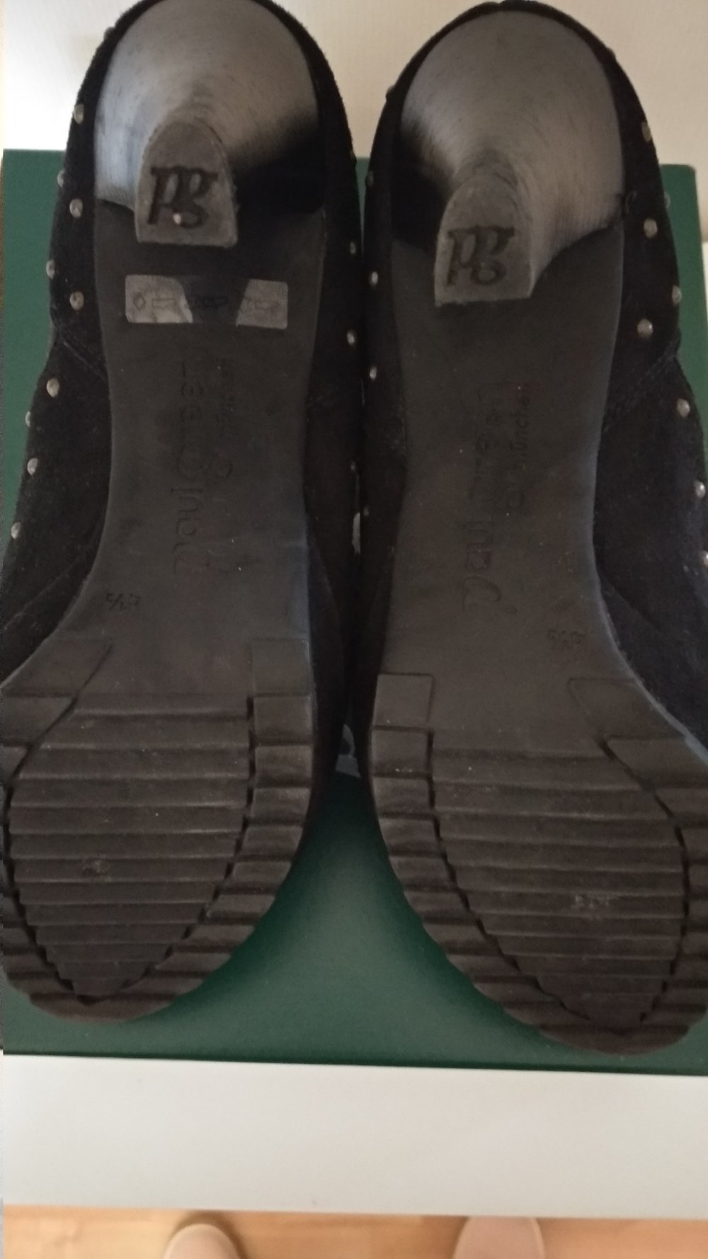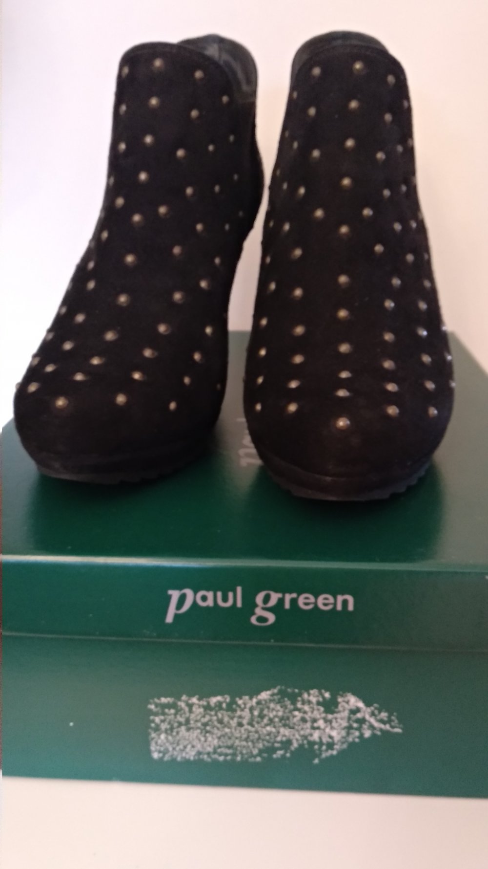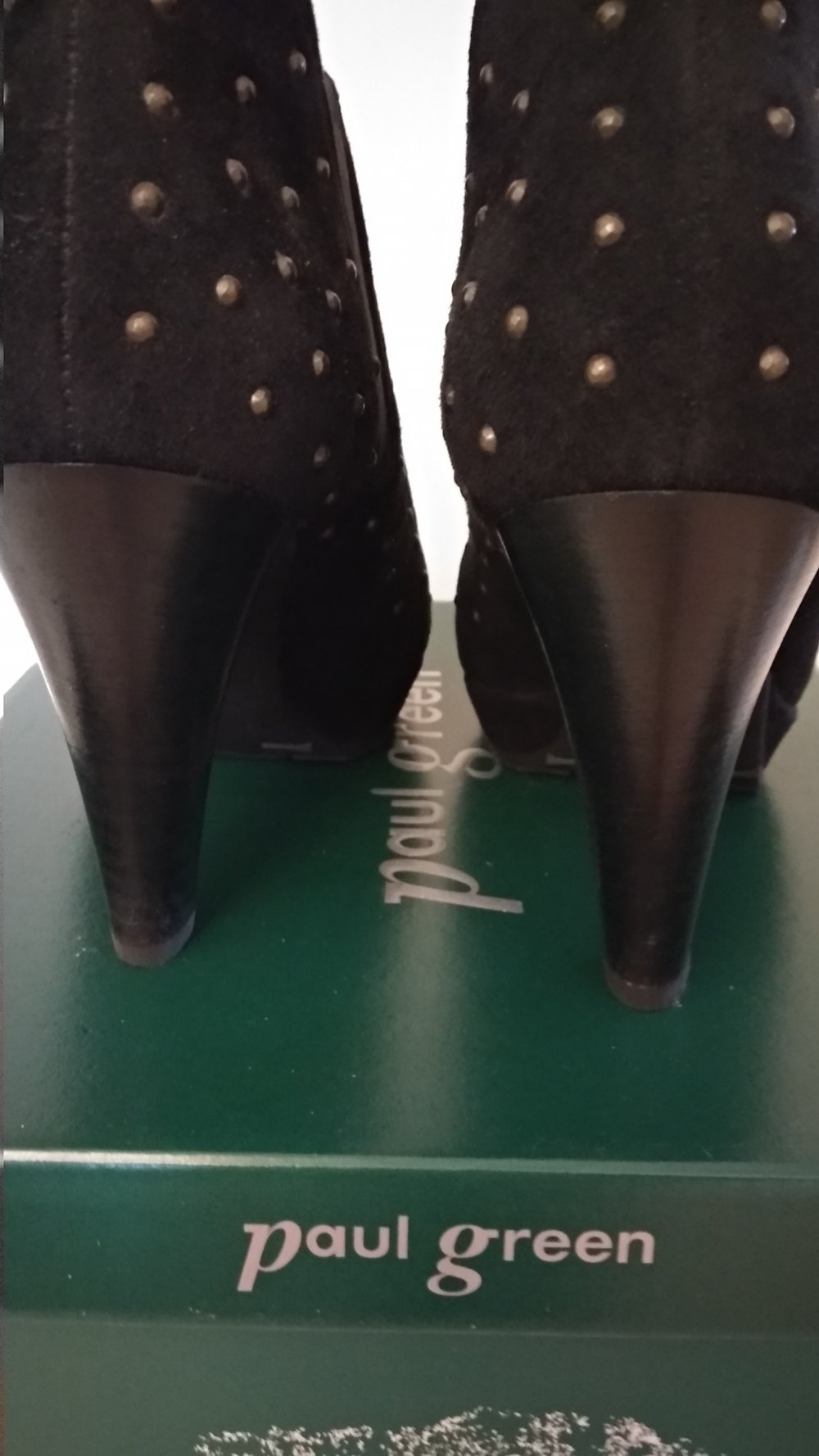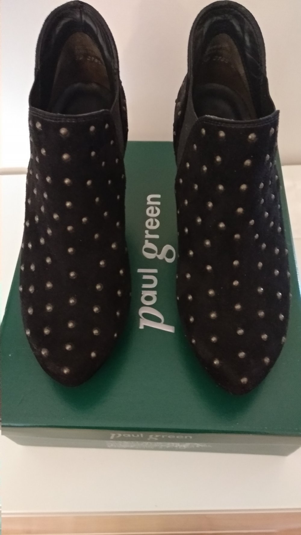 wunderschöne Plateau High Heels von Paul Green, schwarz Wildleder mit messing-farbenen Nieten, sehr ausgefallen und bequem. Ich habe die Schuhe 2x getragen, sind so gut wie neu. Der Neupreis lag bei 245,00 Euro