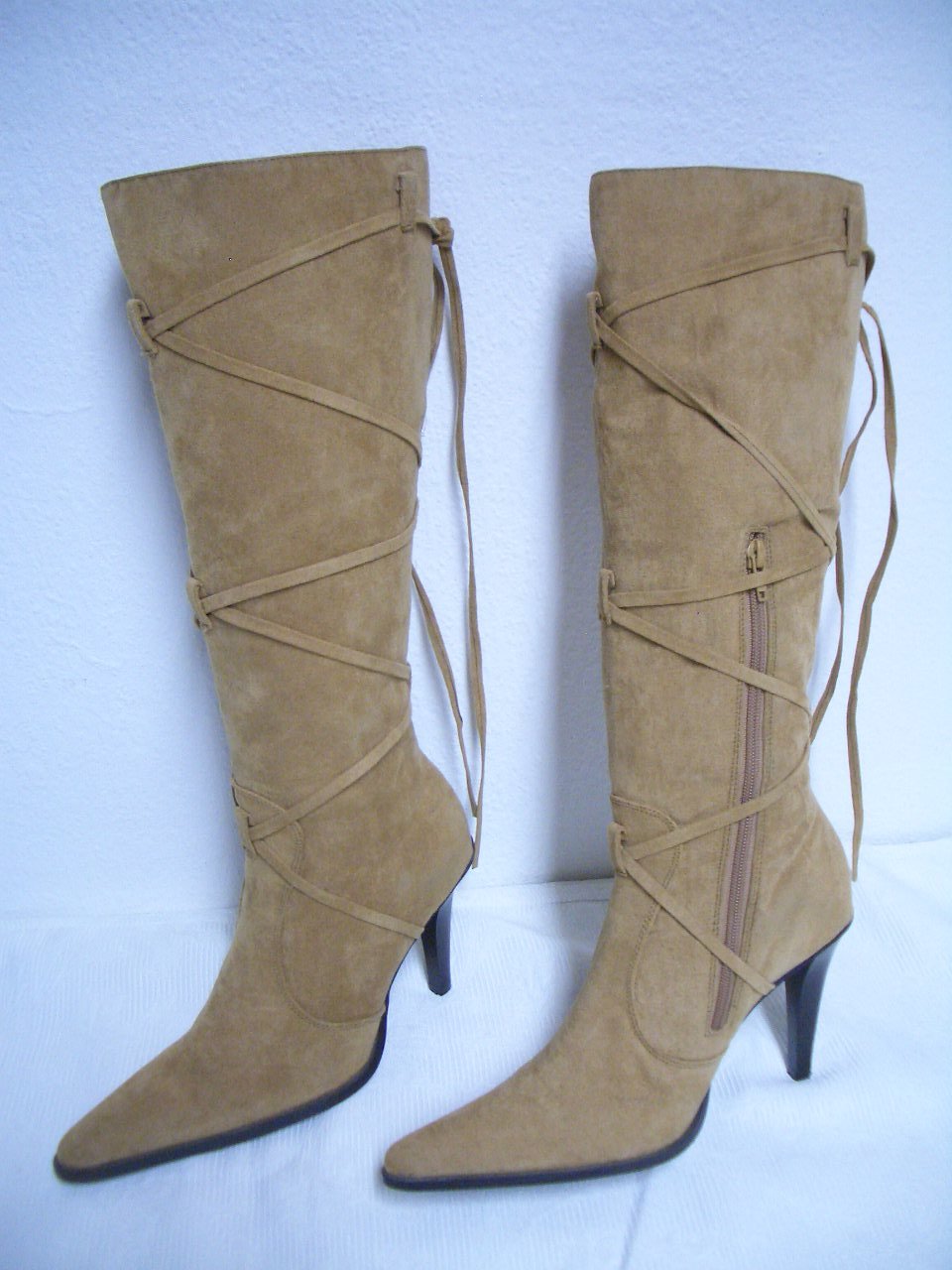 Biete NEUE Damenstiefel in Gr.40 Wildlederbraun mit seitlichen Reisverschluss zum öffnen, und außen schmückende Bänder an.
