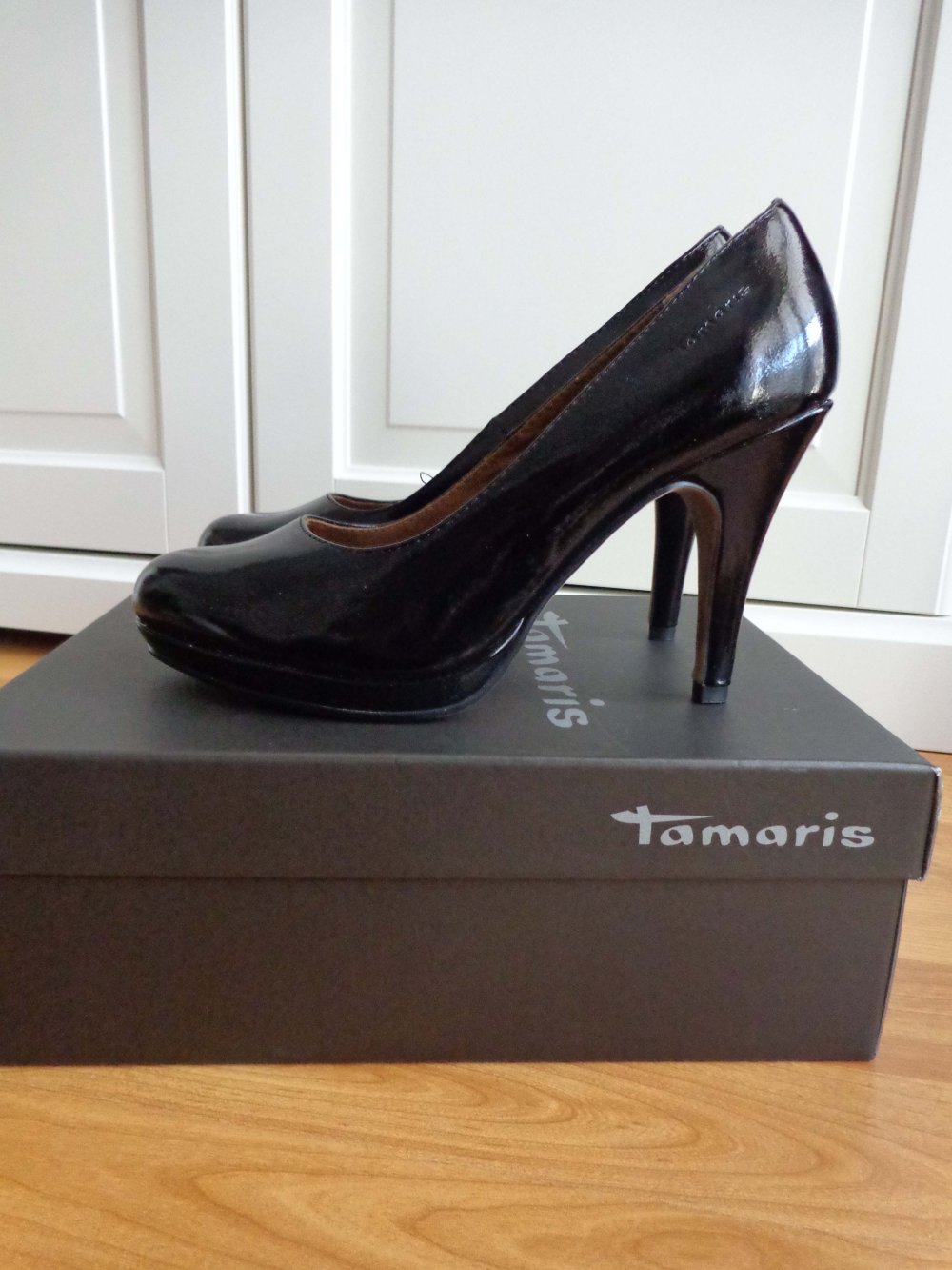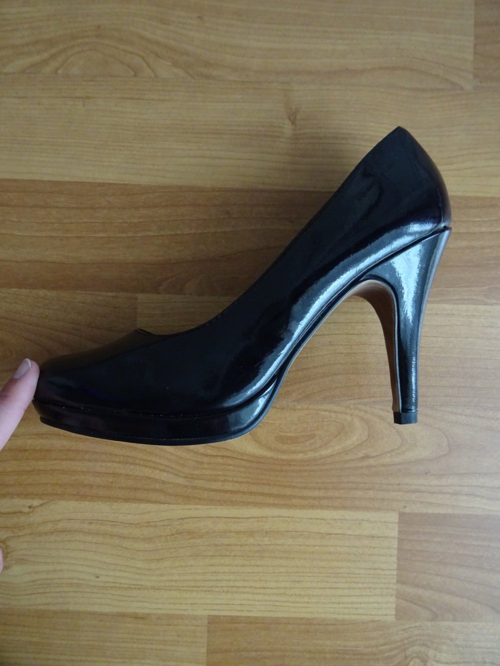 Ungetragene schwarze High Heels in Lackleder- Imitat.