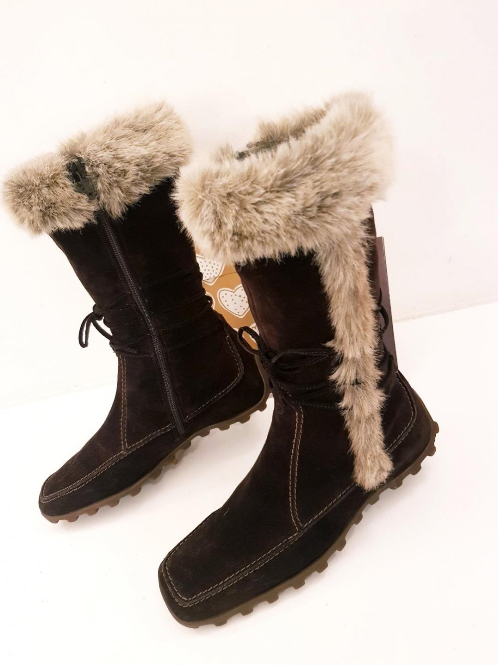 Hallo, biete hier ein paar Winterstiefel Warm gefüttert, schöne Wildleder Winterstiefel mit Kunstfell Ansatz, in braun Gr. 39 sind in sehr guten Zustand fast nicht getragen siehe Bilder...>