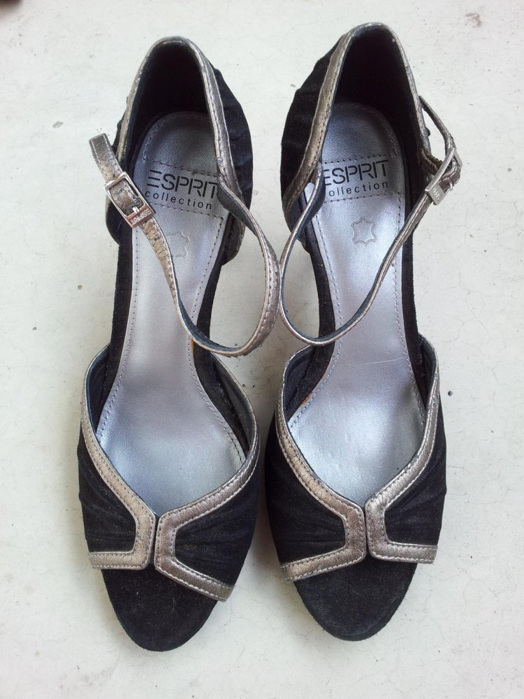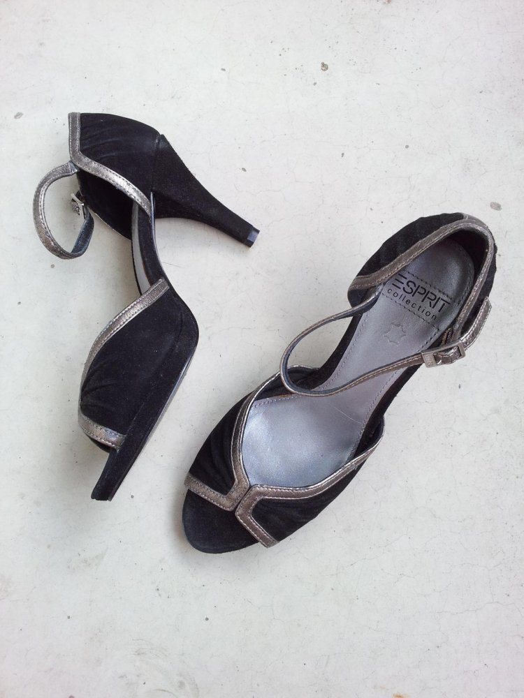 Esprit Sandale Sandalette in 38, Schwarz/Silber, Wildleder, NEU