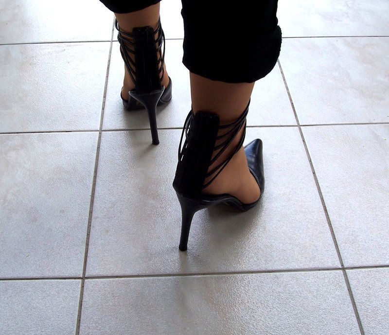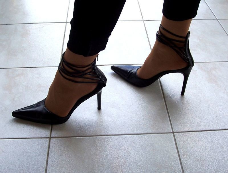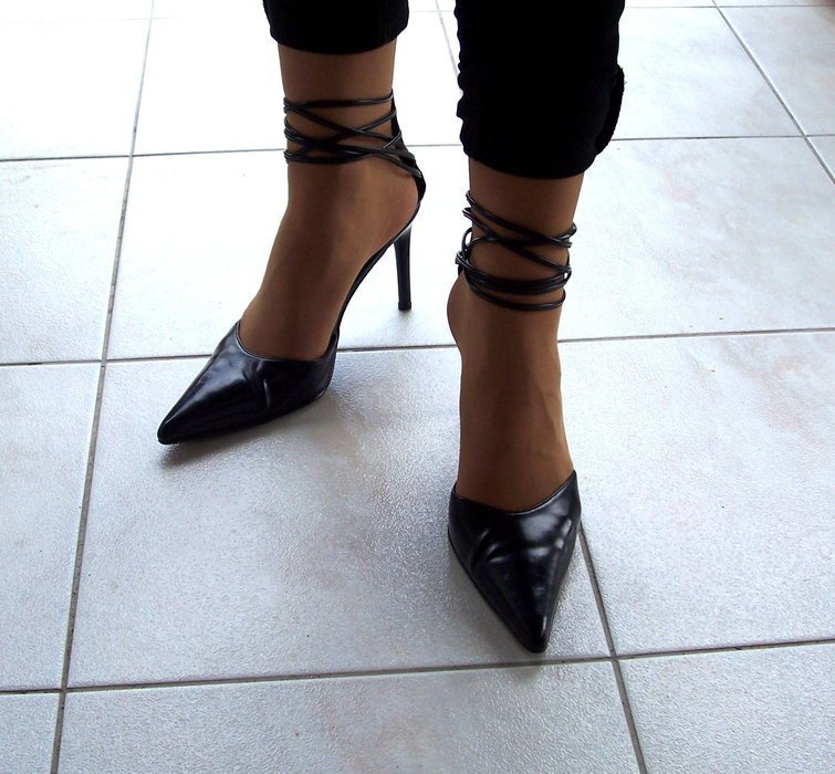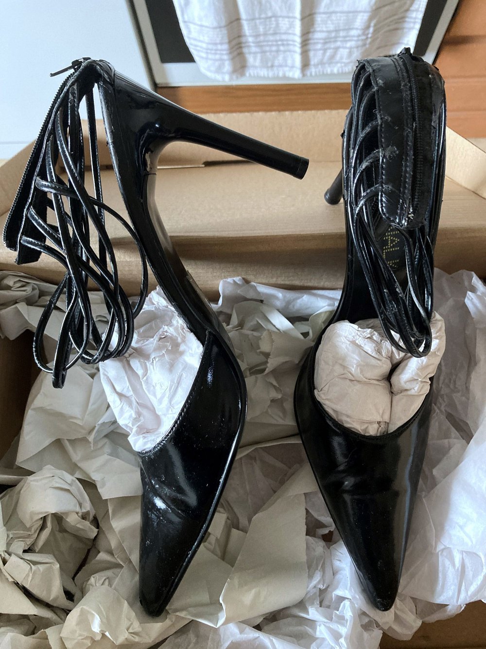 CITYWALK – Schwarze High Heels mit Köchelschnürung und Reißverschluss an der Ferse in Gr. 41. Absatz ca. 10,5 cm.