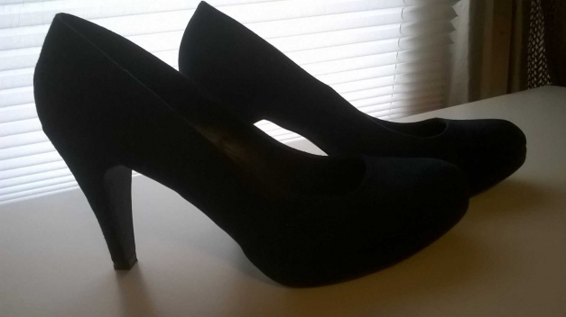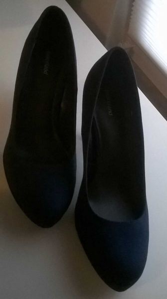 Klassische Pumps von Deichmann, samtig und dunkelblau. Ich habe sie mir extra für eine Hochzeit gekauft und auch nur dort getragen. Sie passen mir nicht - wie so ziemlich alle Pumps die ich jemals anprobiert habe =/