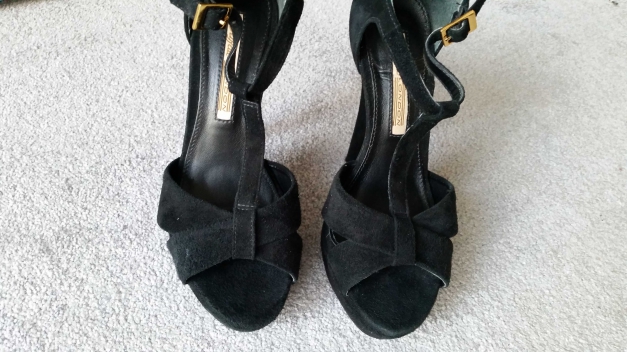 Buffalo Highheels schwarz Plateausandalette , Absatz 14cm und Plateau 4cm hoch, Wildleder, trotz der Höhe sehr bequem zu laufen, mit T-Strap, super schön zum Abendkleid NP 139€