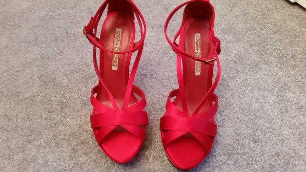 Buffalo Highheels metallicrot , Absatz ist 14cm hoch und das Plateau ist 2,5cm,sicherer Halt durch die extravagante Riemchenführung, sehr elegant NP 125