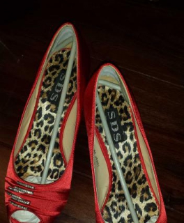 rote Pumps Schuhe mit Strass Größe 39 Absatz 6cm innen mit Leopardenmuster