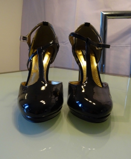 BLINK Stiletto-Pumps, High Heels, T-Strap, schwarz lack, Größe:41