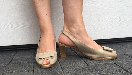 Vicari, ital. Leder Peeptoe, goldmetallic, Gr.38,5
