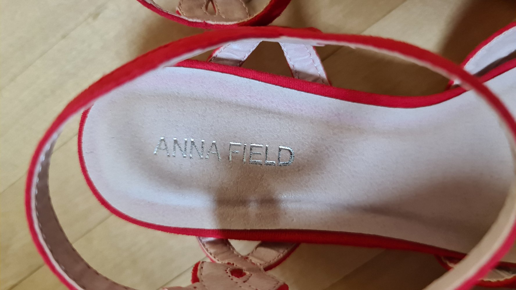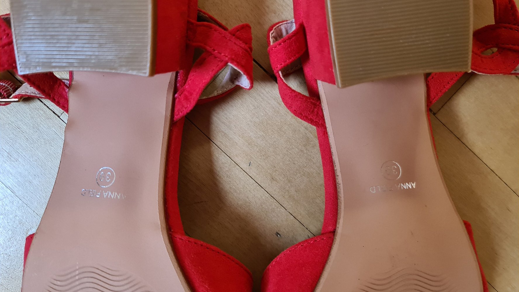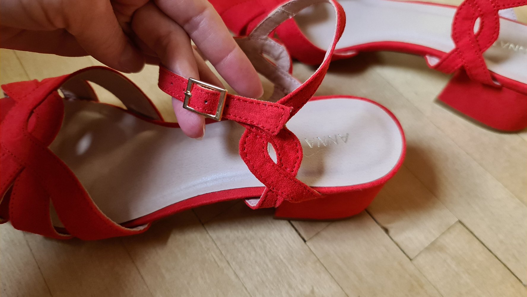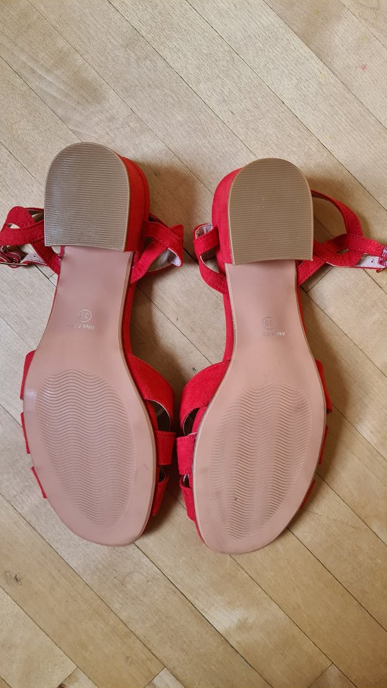 -ungetragene, rote Riemchensandaletten