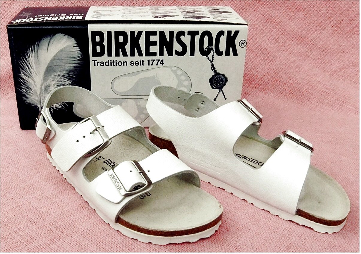 Birkenstock Milano Sandalen - Größe 37 - Naturleder weiß / schmal - Art.Nr. 034133.