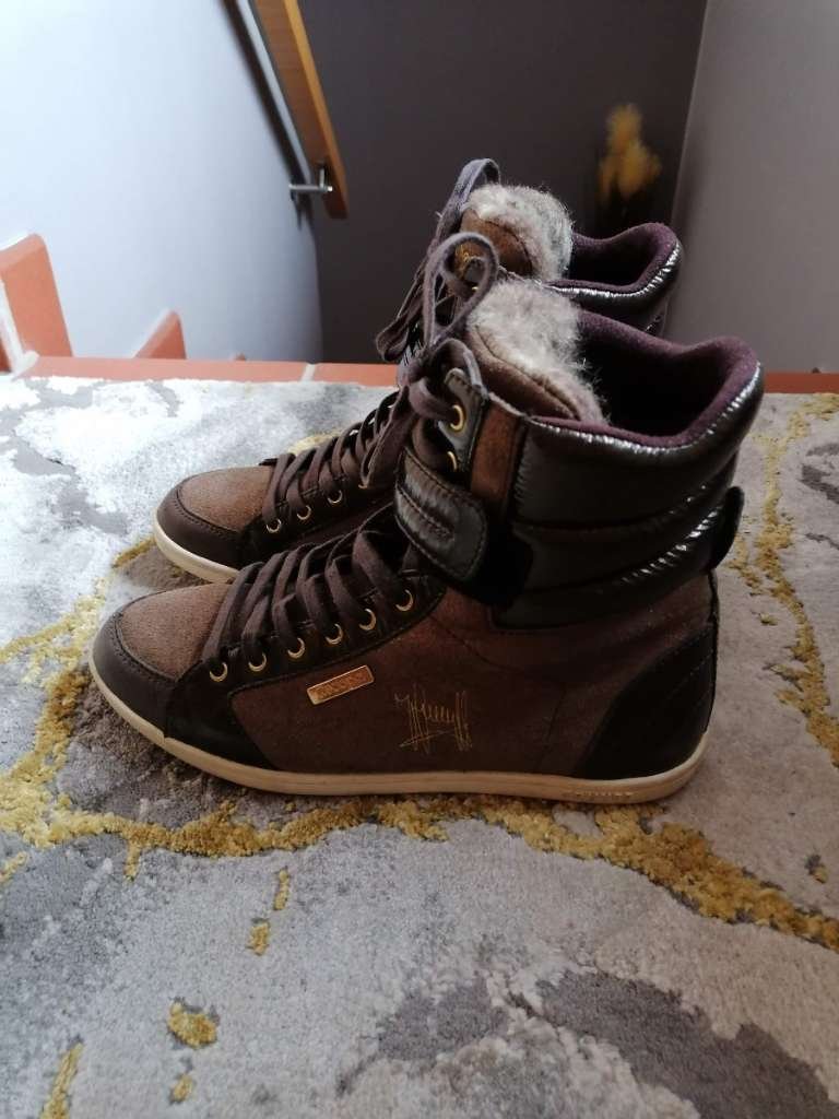 Wunderschöne, höhere Sneaker von Cruyff in schönem Braun mit goldfarbenen Details.