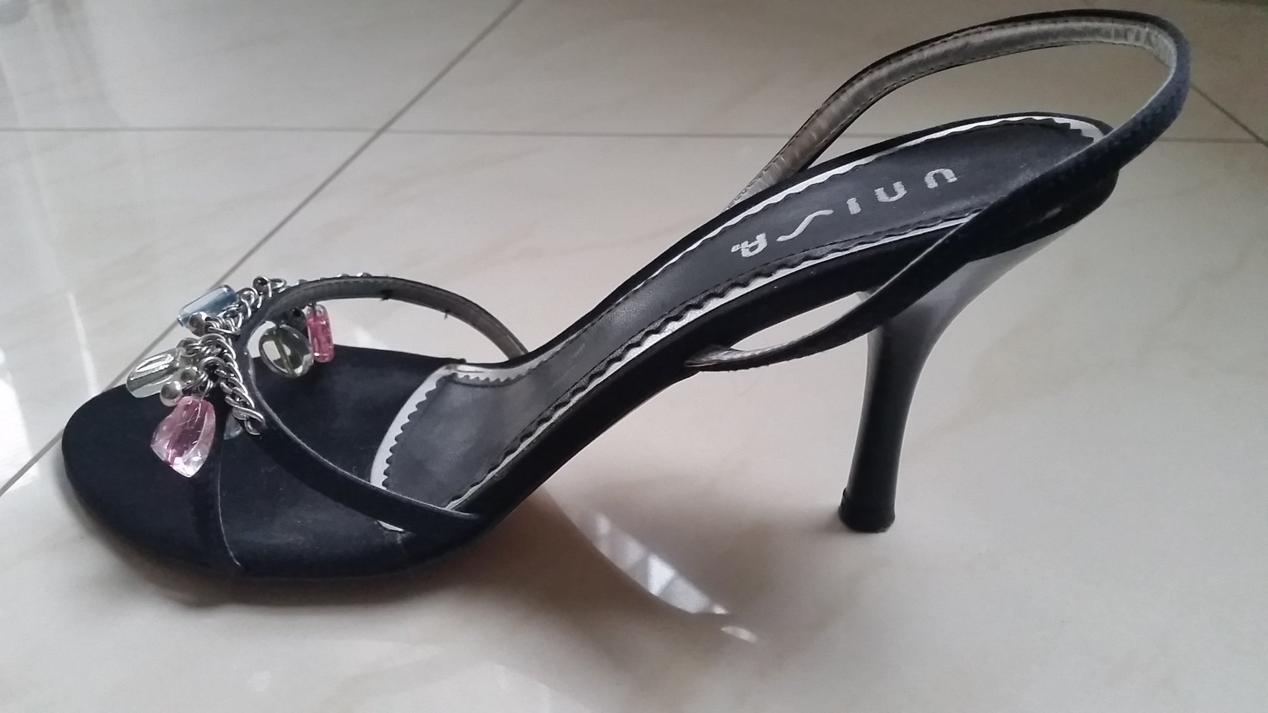 UNISA filigrane Sandalette Slingbacks Riemchen Gr.40 schwarz Satin Schmucksteine