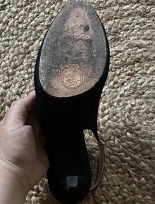 schwarze Wildleder Slingback Peeptoes