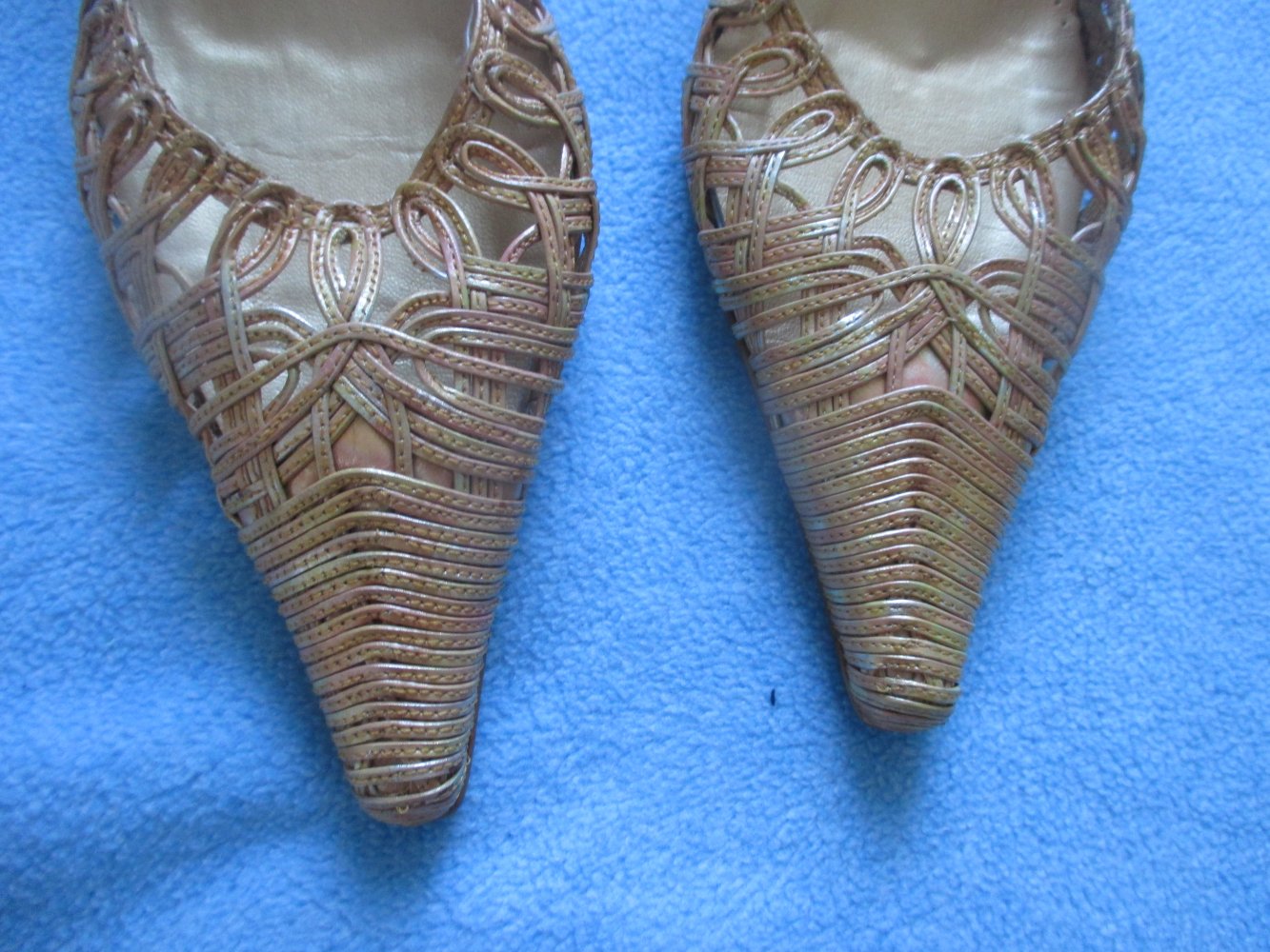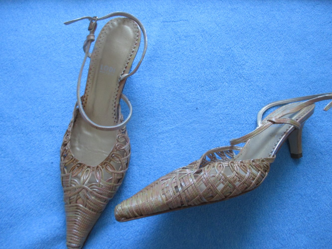 NEU im Karton * Flecht * Häckel- Optik * Echt Leder * High Heels * Slingbacks * Sling- Pumps * Schuhe "LODI" Made in Spain * Gr. 38/ 5 * gold * kupfer *