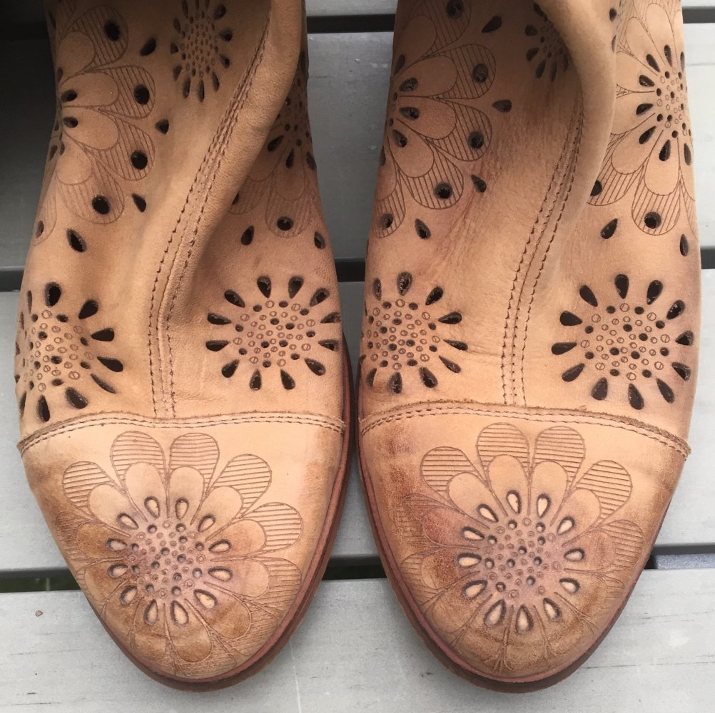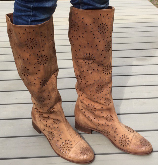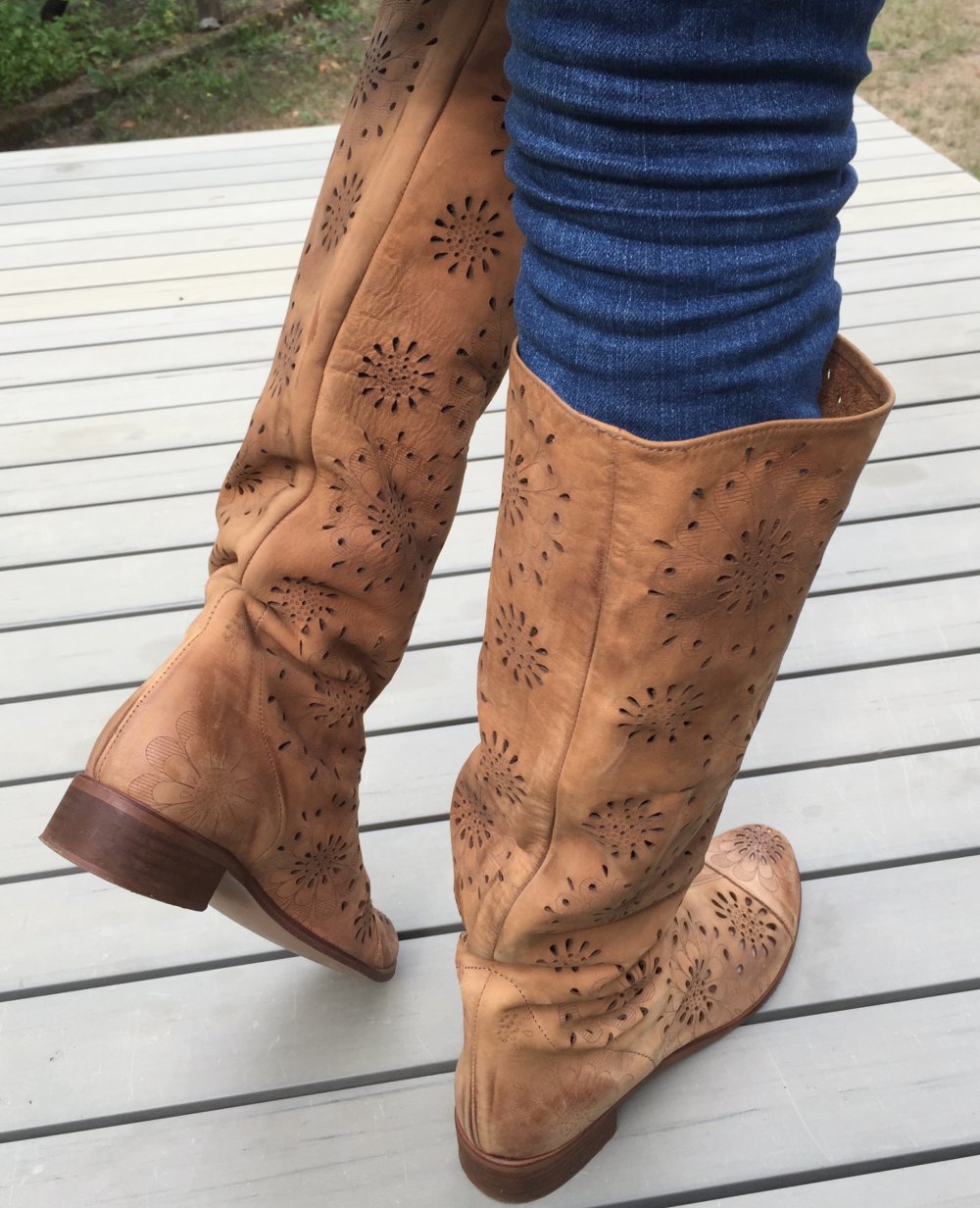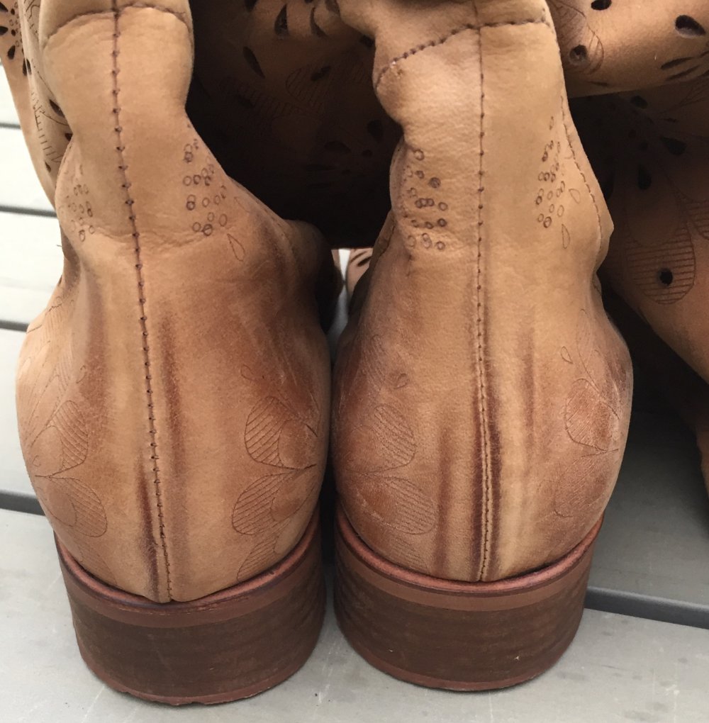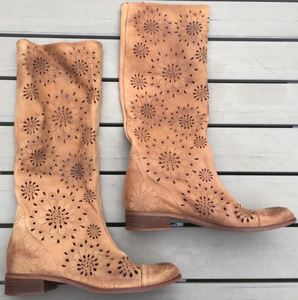SOMMERSTIEFEL Slouch LEDER natur BLUMEN Cut Outs Gr. 40