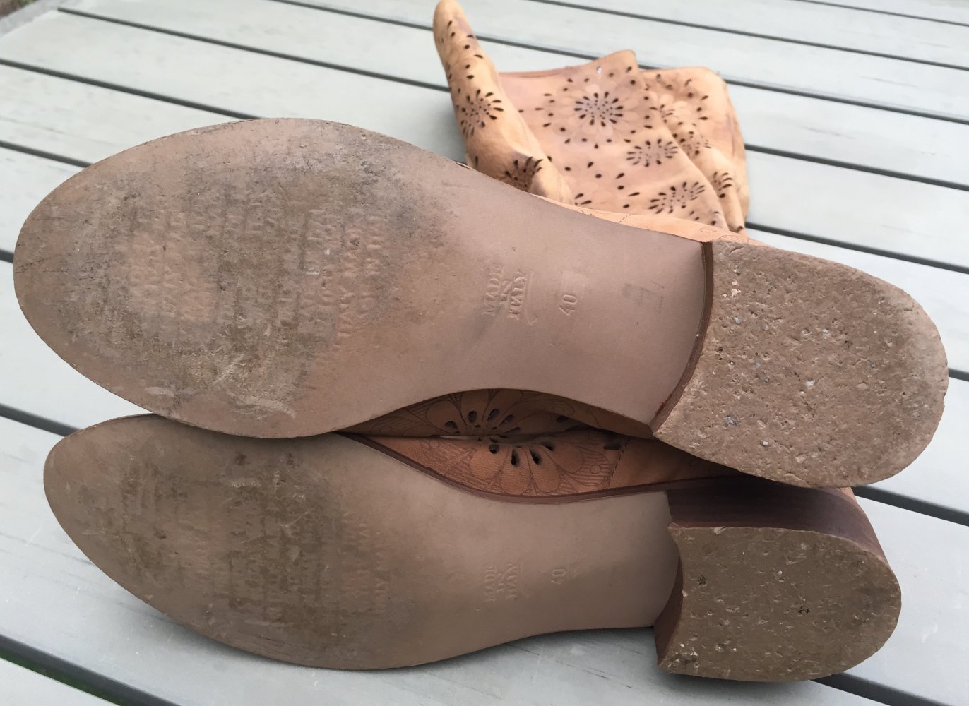 Naturfarbene Sommerstiefel in Größe 40.