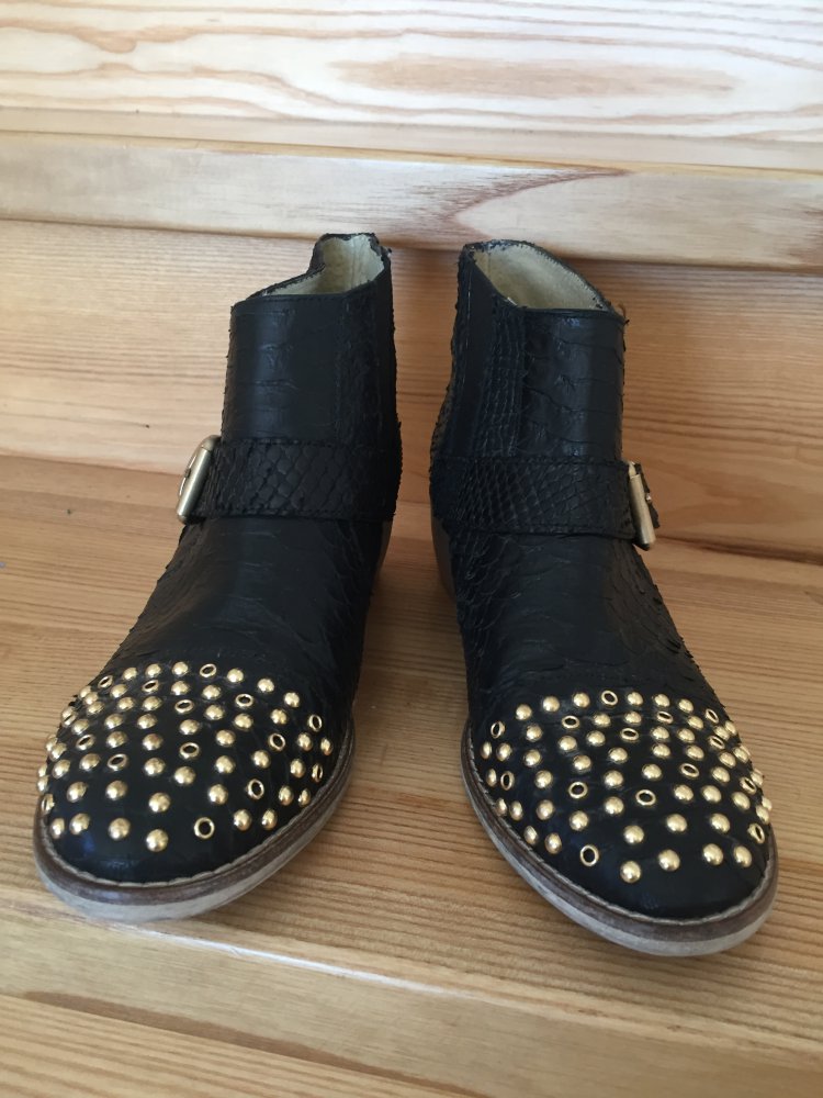 Stiefel Biker Boots Purtugal schwarz Schnallen Nieten. Gr. 37