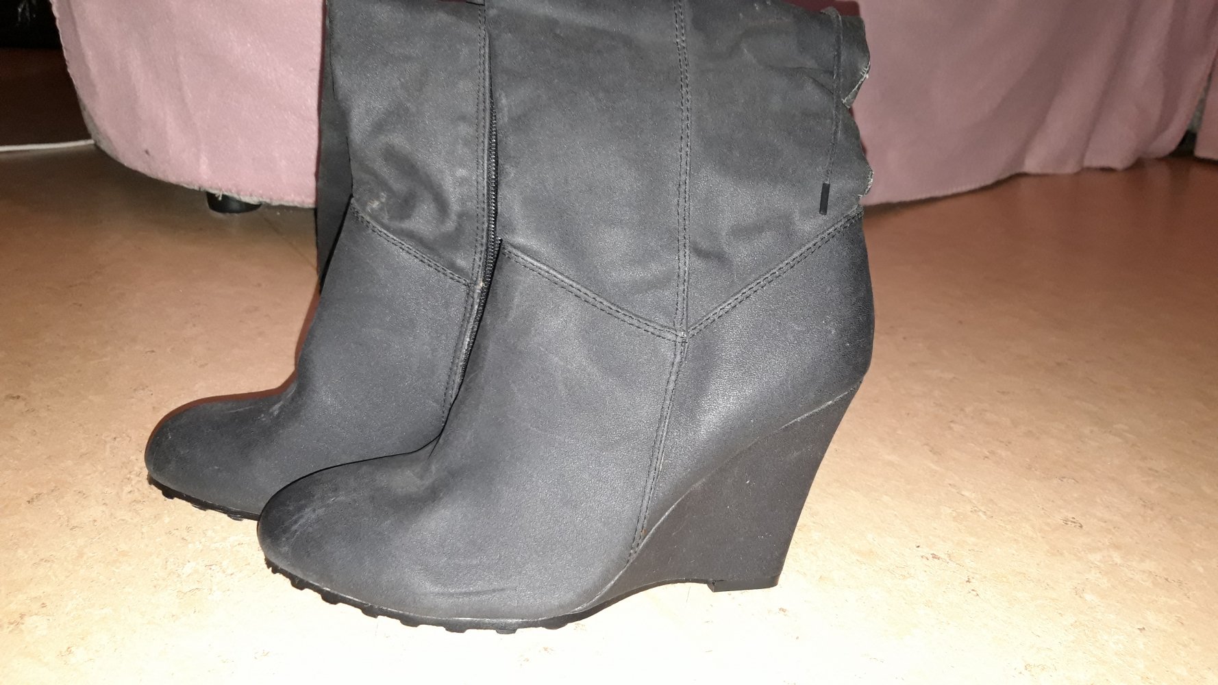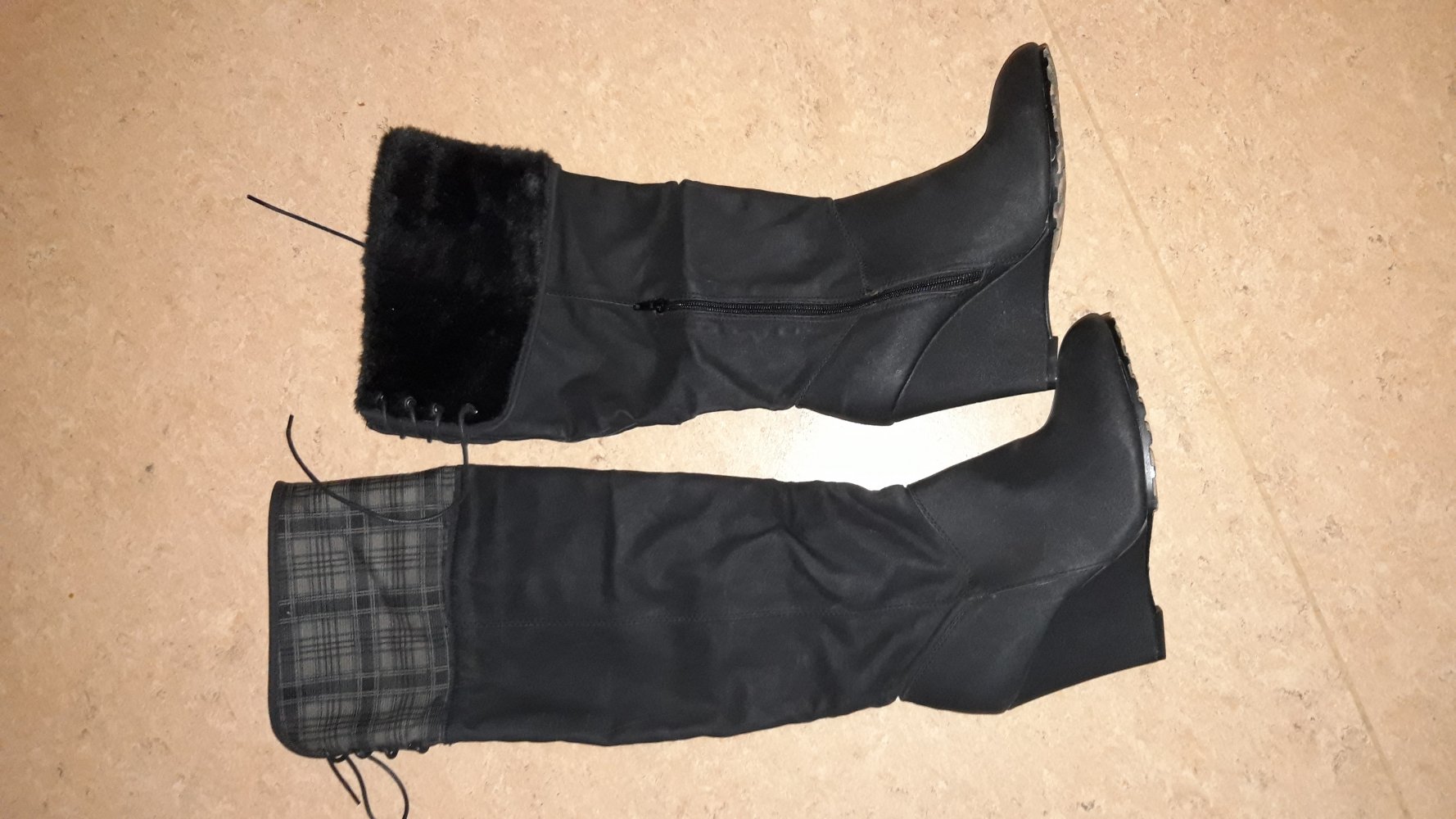 Schöne, ungetragene Stiefel mit Möglichkeit sie unterschiedlich zu tragen. Als - bei mir- fast overknee, regulärer Stiefel oder eben den Schaft nicht hochgezogen, sondern nach unten geschoben.