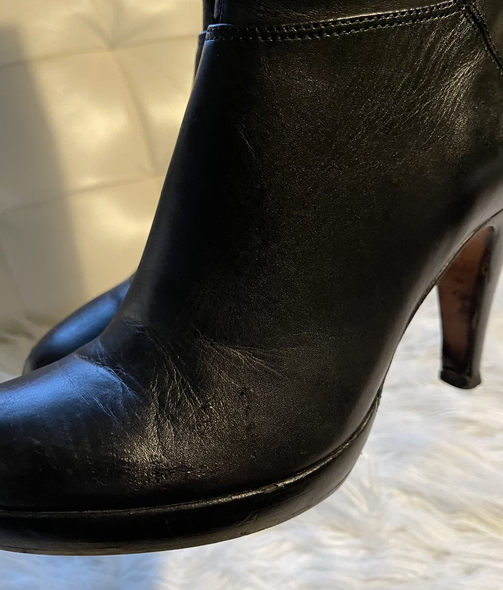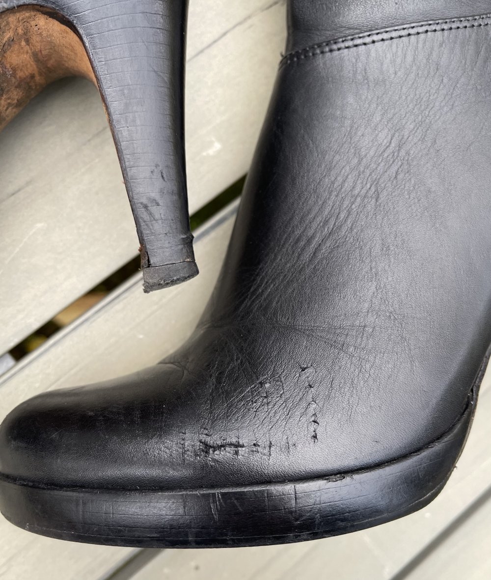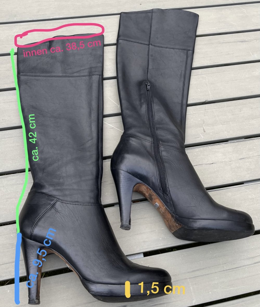Die Stiefel befinden sich gutem Zustand und haben normale Gebrauchsspuren. Der linke Schuh hat am Vorderfuß seitlich ein paar Kratzer.