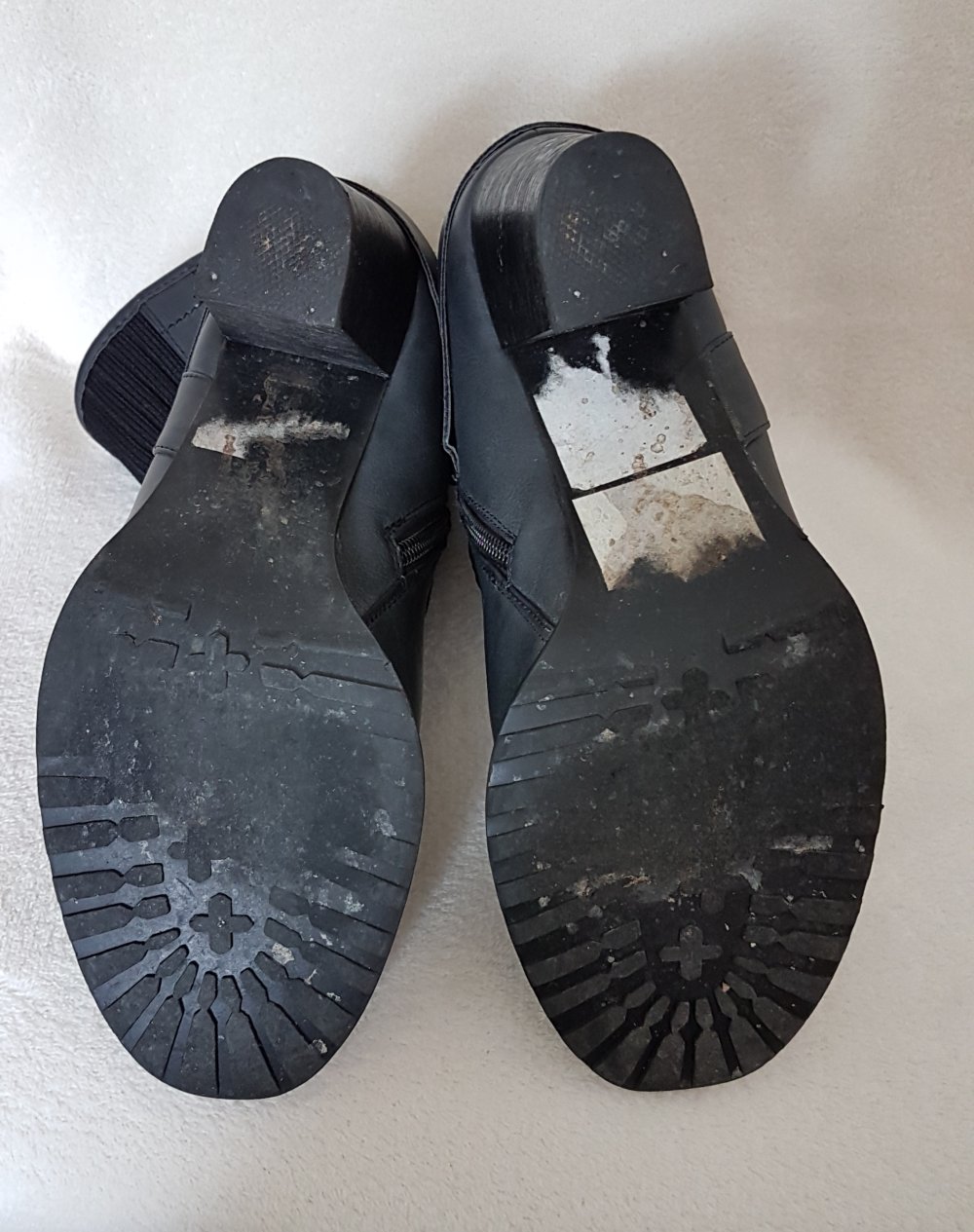 Die Kanten der Sohlen sind leicht brüchig und im inneren der Stiefel,