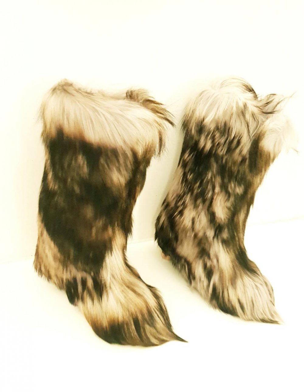 Biete ein Paar Winterstiefel von der Fa. Potons -Olimpic aus Italien, für Frauen Zottelfell Yeti Stiefel Winter echt Ziegenfell Stiefel Lange Fellstiefelte in Gr. 9 an siehe Bilder---->