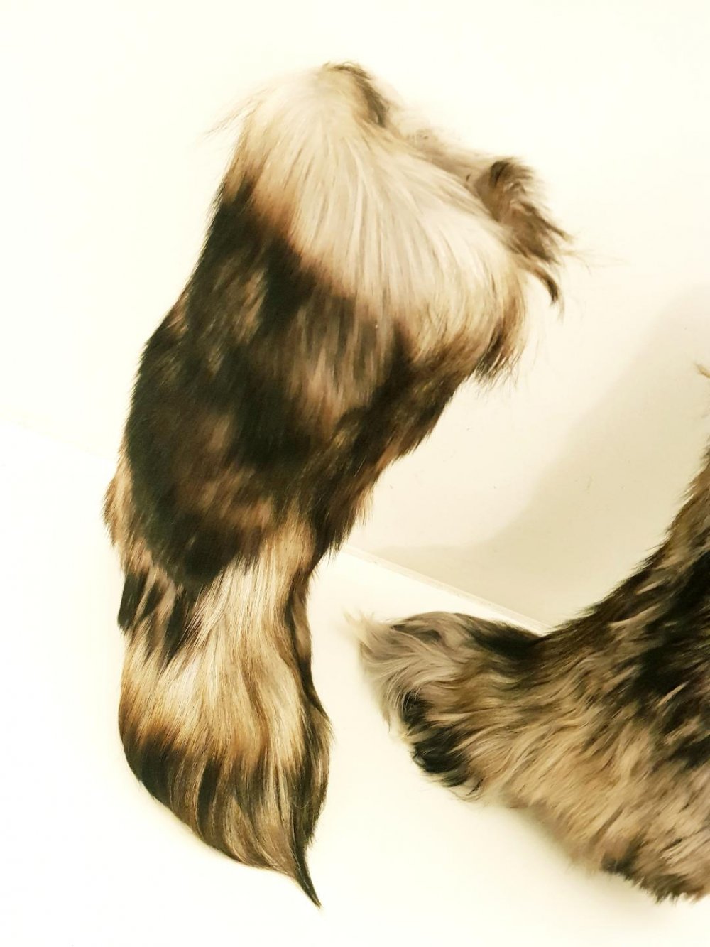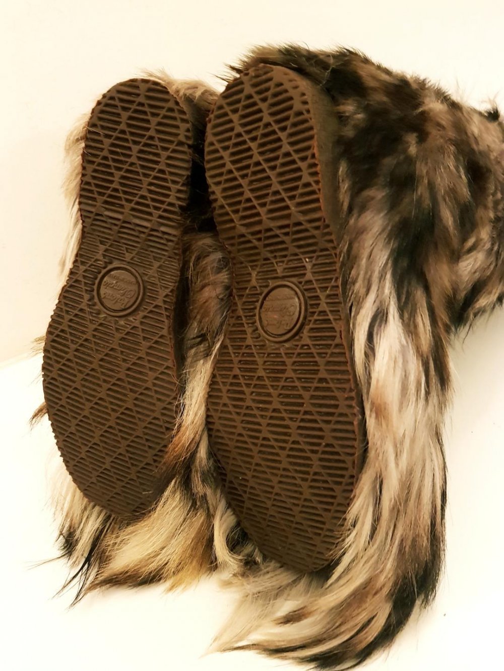 Obermaterial echtes Ziegenfell, schimmert weiß-braun-schwarz, auf den Fotos nur zu erahnen...............