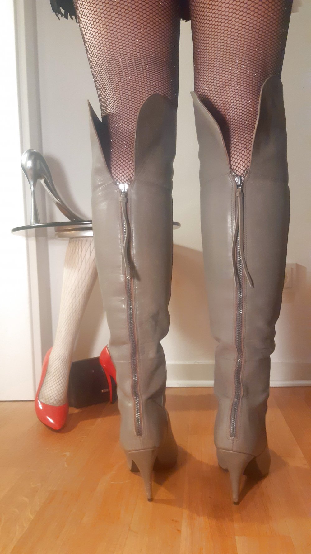 ZARA Overknee Glattleder Stiefel grau über Knie oder umschlagen 40