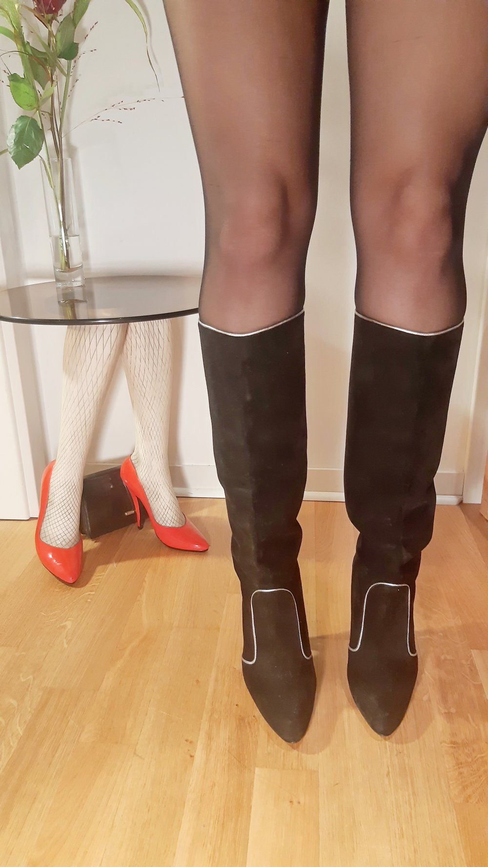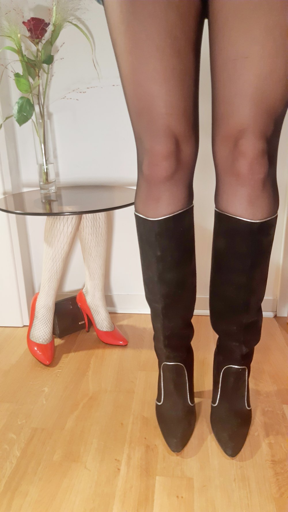 Schicke spitze Stiletto Stiefel von D&G zum reinschlüpfen. Echtledersohle und witziger Trichter-Absatz zum Durchgucken.