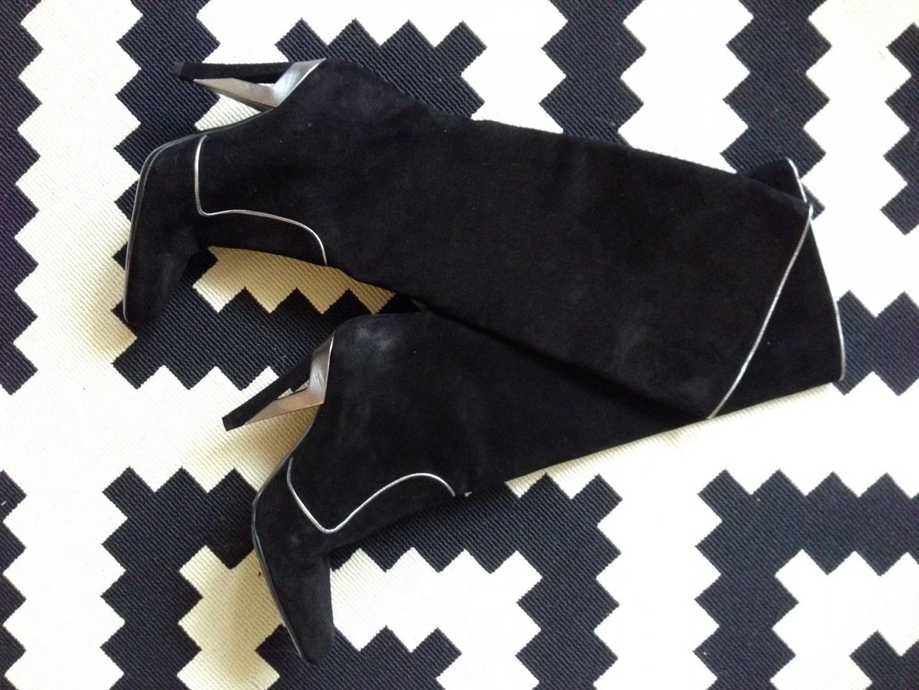 Dolce Gabbana Wildleder Schlupf High Heel Stiefel Slouch schwarz silber 39,5