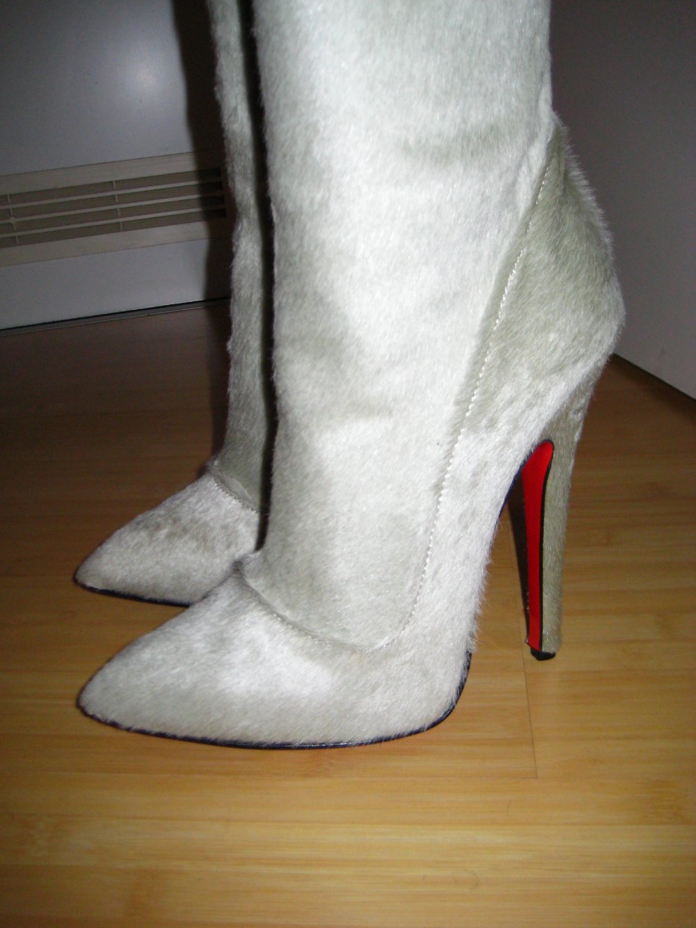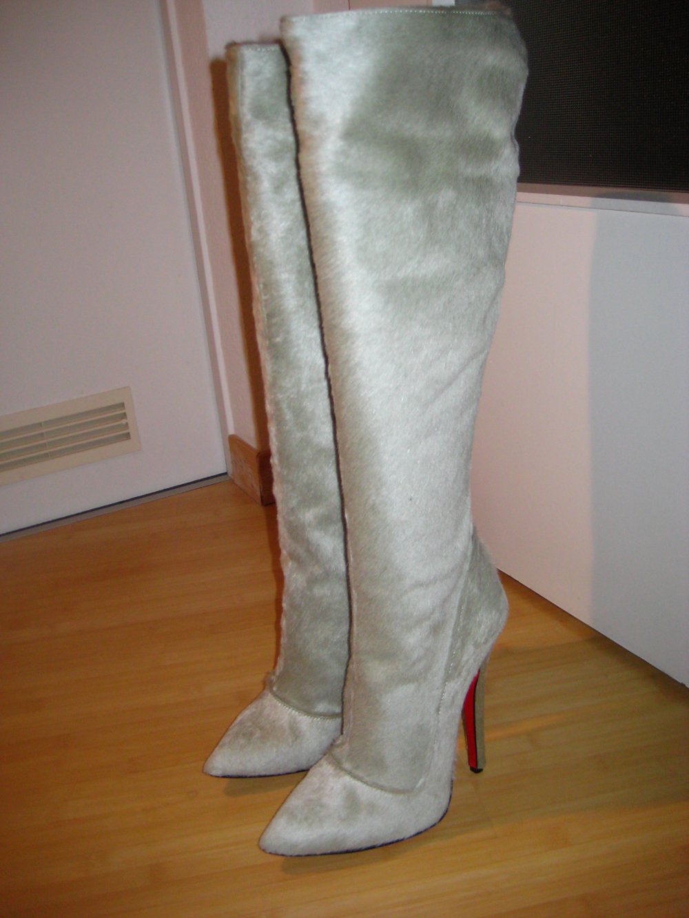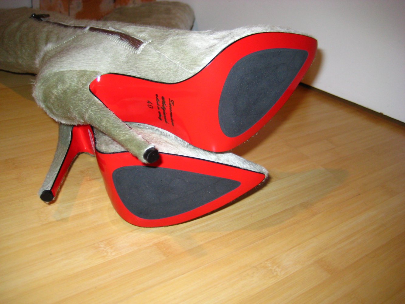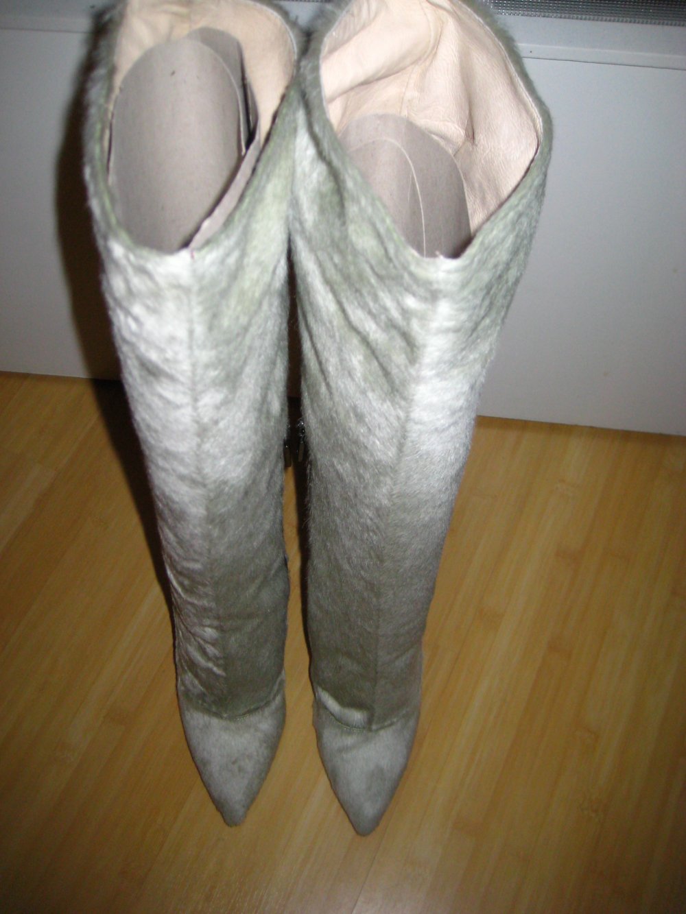 Made in Italy Mori steile High Heel Stiefel Pony Fell Leder grün Pistazie 40