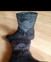Stiefel Biker Boots Purtugal schwarz Schnallen Nieten. Gr. 37