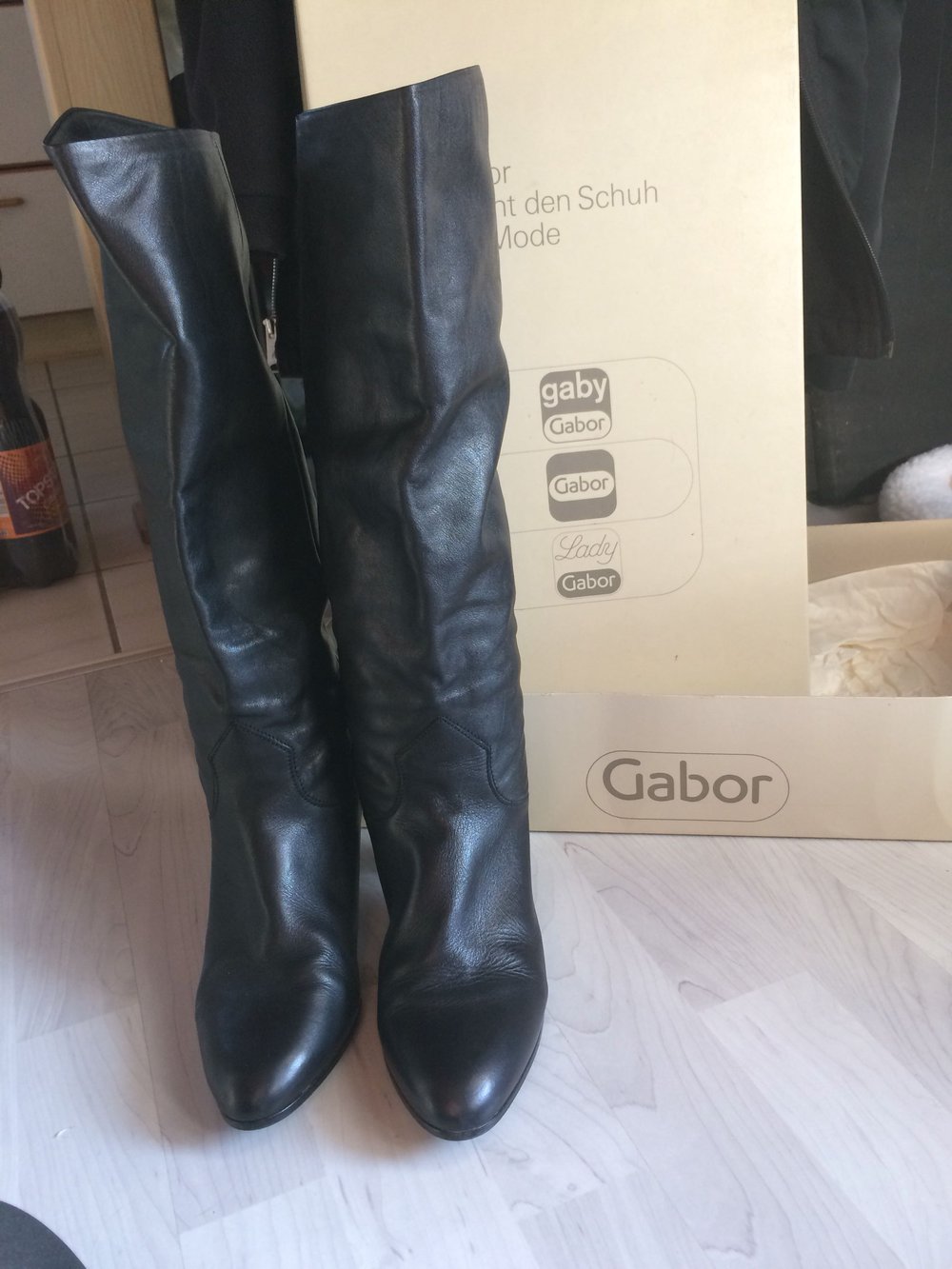 Stiefel sind in guten zustand, ausser der absatz sieht etwas mitgenommen aus,-der absatz wo man auf dem strassenbelag aufkommt, muss an einem schuh erneurt werden-der ist total abgetreten! wer sie sich mal anschauen will kommt mal vorbei. #gabor #elegant #schick #leder #schwarz #luxus