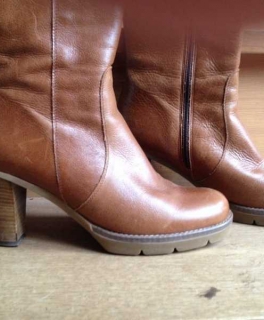 Sehr bequemer Lederstiefel von Kmb in Braun mit lila Leder und Fake fur Fell gefüttert, dicke rutschfeste Ledersohle, Absatz 8 cm , Schaftbreite 18,5 cm , 45 cm lang . Da er mir an der Wade zu weit war hab ich ihn nur zweimal getragen, ein paar Spuren sieht man am Leder, aber minimale ! Wäre er nicht zu breit würde ich ihn nicht verkaufen da er superbequem zum laufen ist bei 8 cm Höhe!!! Tolles Stück ! Kann man prima im Winter tragen, Warme Füße sind garantiert !