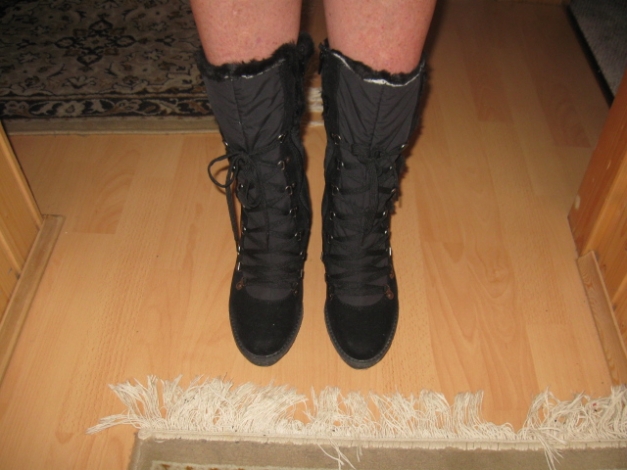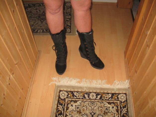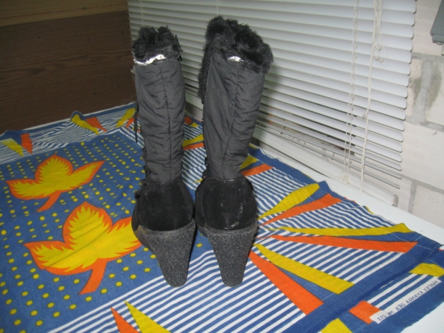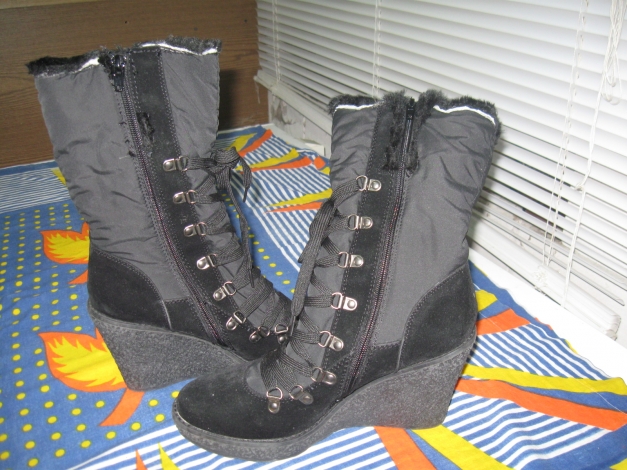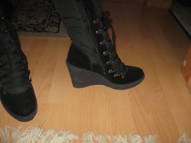 Nagelneue Stiefel mit Keilabsatz.An der Seite befindet sich ein Reißverschluß.Von Innen besitzen diese tollen Stiefel,ein kuschliges Fell.Der Keilabsatz besitzt hinten eine Höhe von ca.10cm und von vorn ca.2cm.Sie sind einfach bequem.