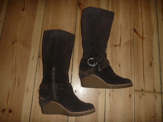 Ich verkaufe diese Stiefel aus braunem Wildleder von der Marke "ASH" - Keilabsatz Höhe 8 cm - Schafthöhe 33 cm - Reissverschluss an der Seite - die Schuhe sind kaum getragen und haben keine Mängel - Reissverschlüsse in Ordnung - unser Haushalt ist rauch- und tierhaarfrei - ich verschicke auch