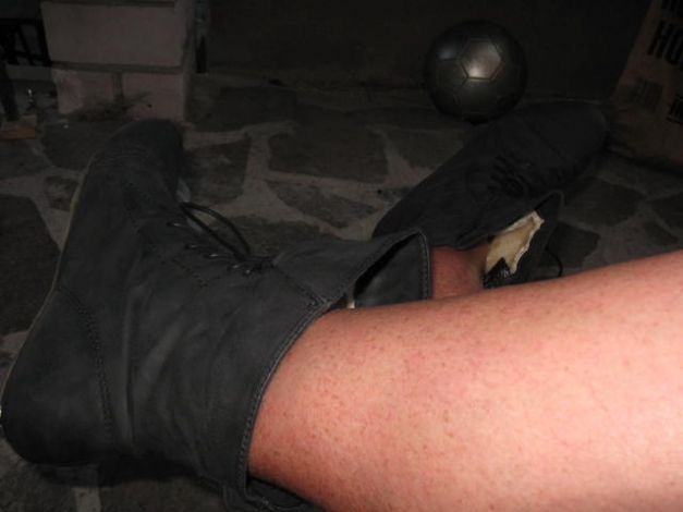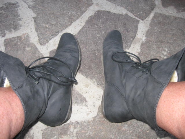 Fantastische flache Stiefelchen, sie sind Knöchelhoch, die Fußspitze im Burlesque Style verziert, vorne zum Schnüren, Innen mit hellem Teddyfutter, höchstens 3x getragen. Das Material riecht und fühlt sich an, wie Leder, aber ich lege mich damit nicht fest.